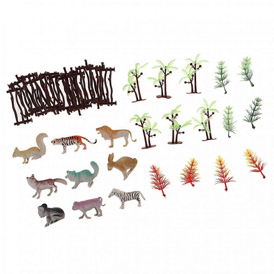 36 Pieces Zoo Animal Model Wildlife Tree Animal Action Figure For Kid