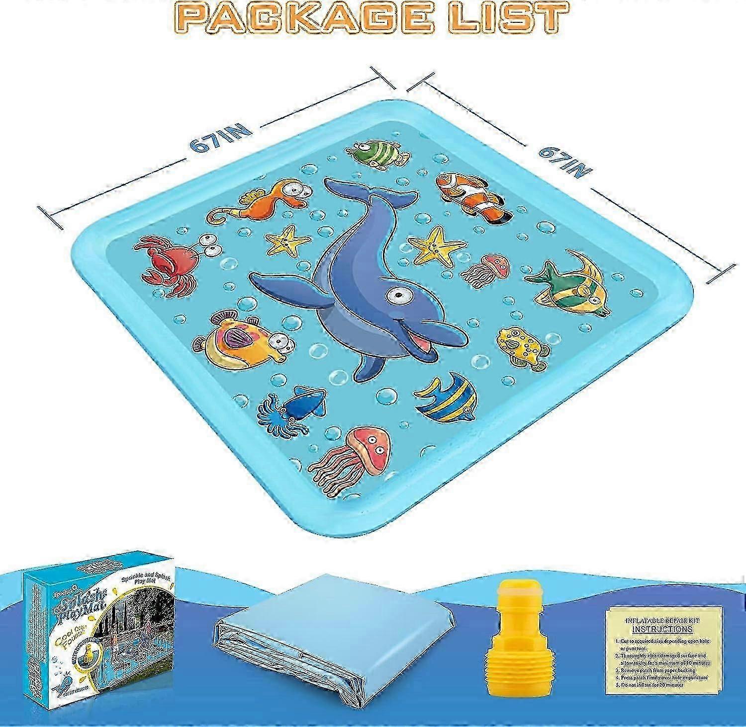 Have a Fun Water Party -- This Sprinkler for kids can be used as a great wading swimming toddler pool. Complete with slip and slide plus toys to make your summer mini pool party super awesome!Patented Design & Fun Outdoor Toys -- Kids love playing with water, especially during pool parties and outdoor games. This outdoor water toy can relieve you from the heat and make the best summer memories.Super Size & Parent-Approved Safety Splash Pad -- This 67" large family-sized square splash play mat is equivalent to a circular splash pad with a diameter of 75", it can allow 2-4 kids to play at the same time. Made with environmentally friendly PVC, it has been tested for safety and durability, plus CPC certified.Install in Seconds -- Parents and kids both benefit because this large splash mat is super simple and quick to hook up to your garden hose, so your kids can play cool outdoor games in just a few seconds and have fun all summer long. This is an amazing birthday gift that provides fun activities for boys or girls.Adjustable Spray Water Height -- Turn your garden hose pressure up or down to adjust the spray height of the water sprinkler depending on the age/size of your child.