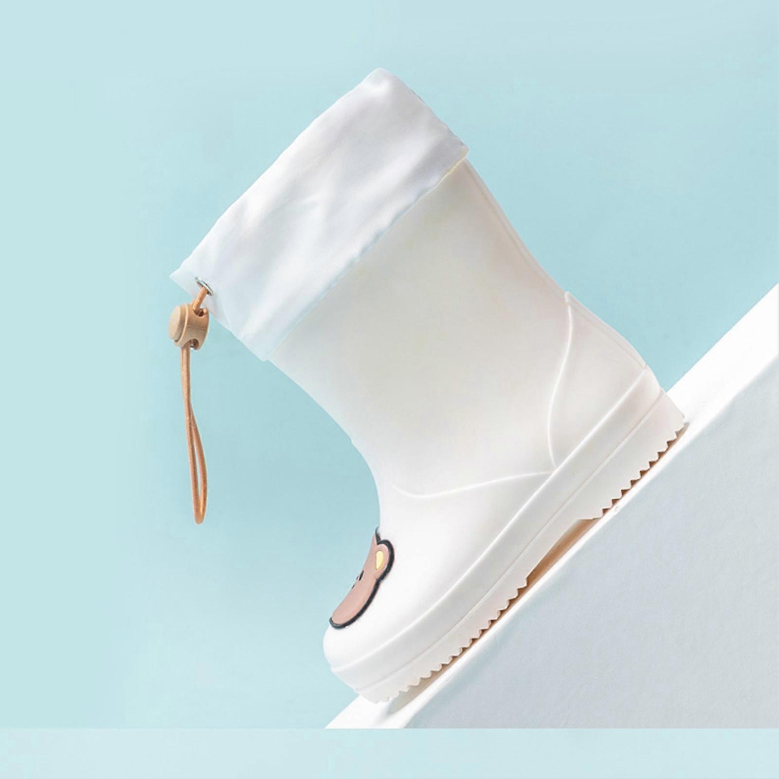 Children Rain Boot Anti Slip Waterproof Rain Boots Beam Port Cartoon Student Water Shoes for Boys Girls With Drawstring Rice White Bear 17