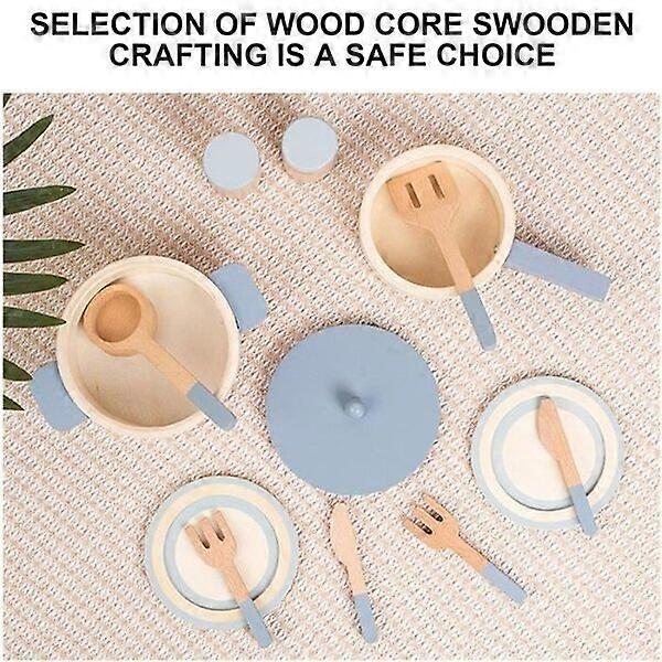 Wooden kitchen toy set of 10 pieces for children's role-playing