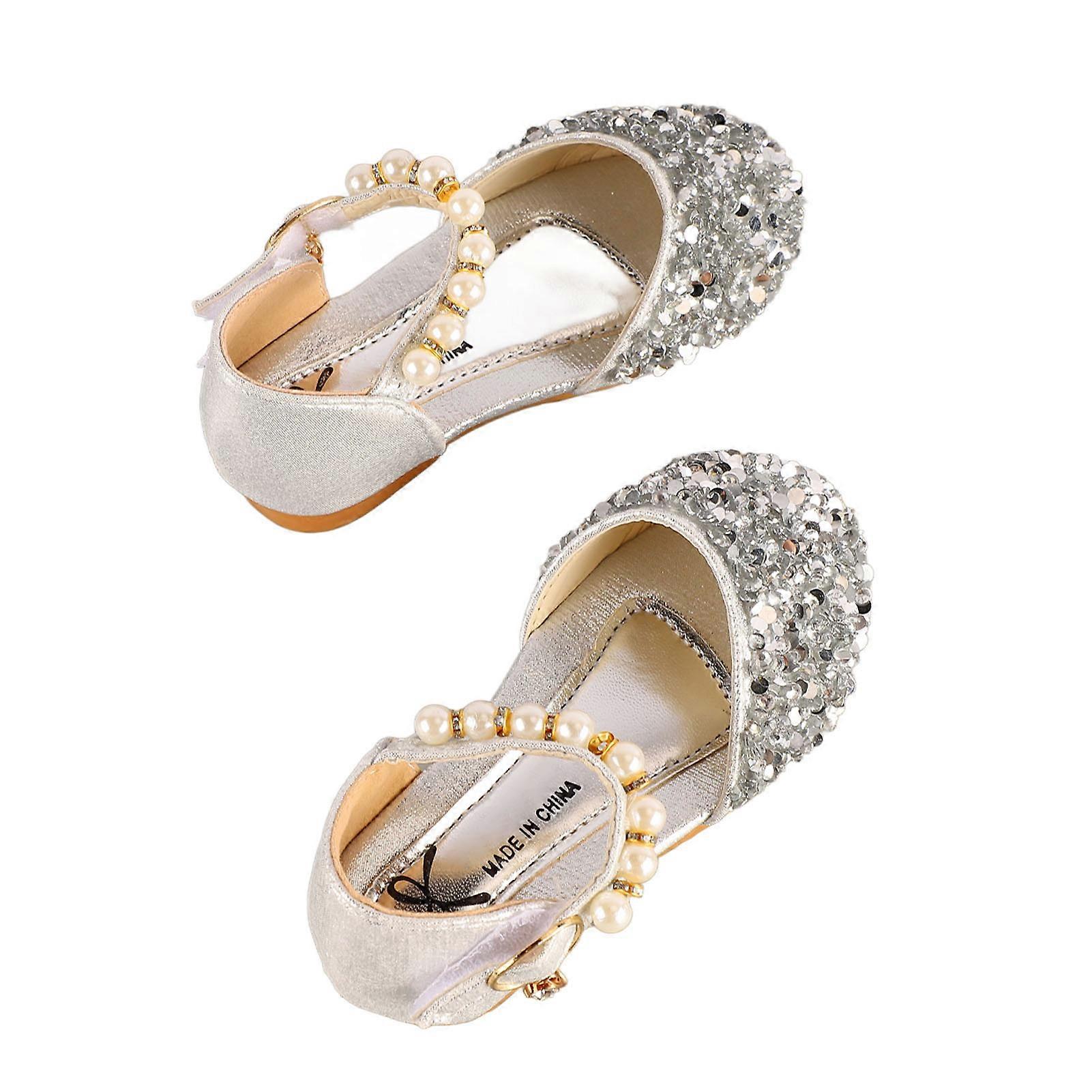 Kid Girl Sequins Faux Pearl Dress Shoes Children Fashionable PU Leather Glitter Flat Shoes for Party Silver 5.5 Inch Item Type: Girl Shoes Material: PU Leather Size: 22, Shoe Length: Approx. 14cm / 5.5in