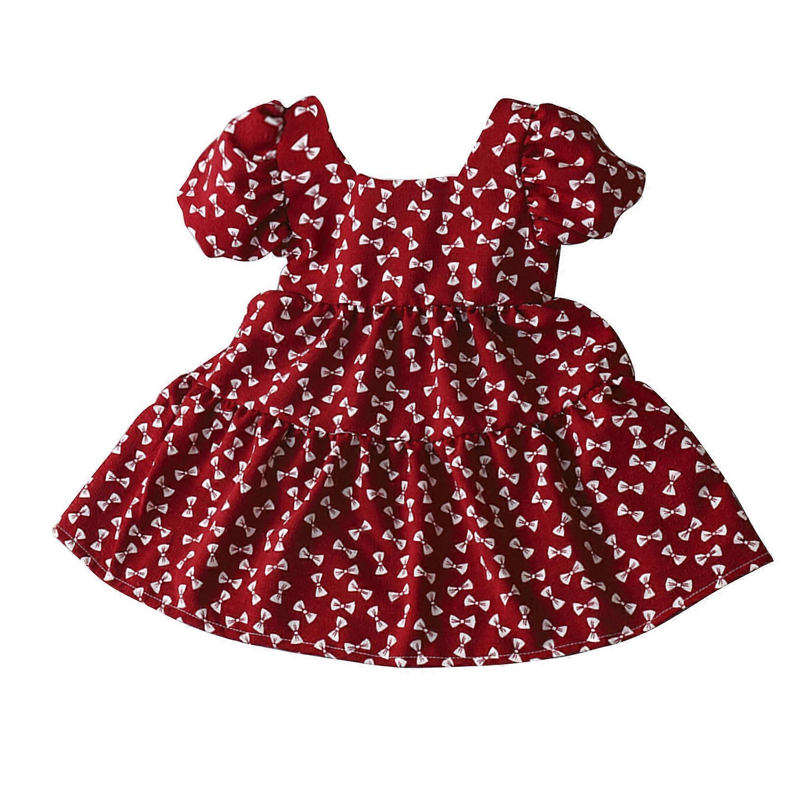 Baby Girl Dress Puff Sleeve Dresses Elegant French Floral Dress for Girls Long Skirt Toddler Bohemia Short Sleeves Dress red bow M