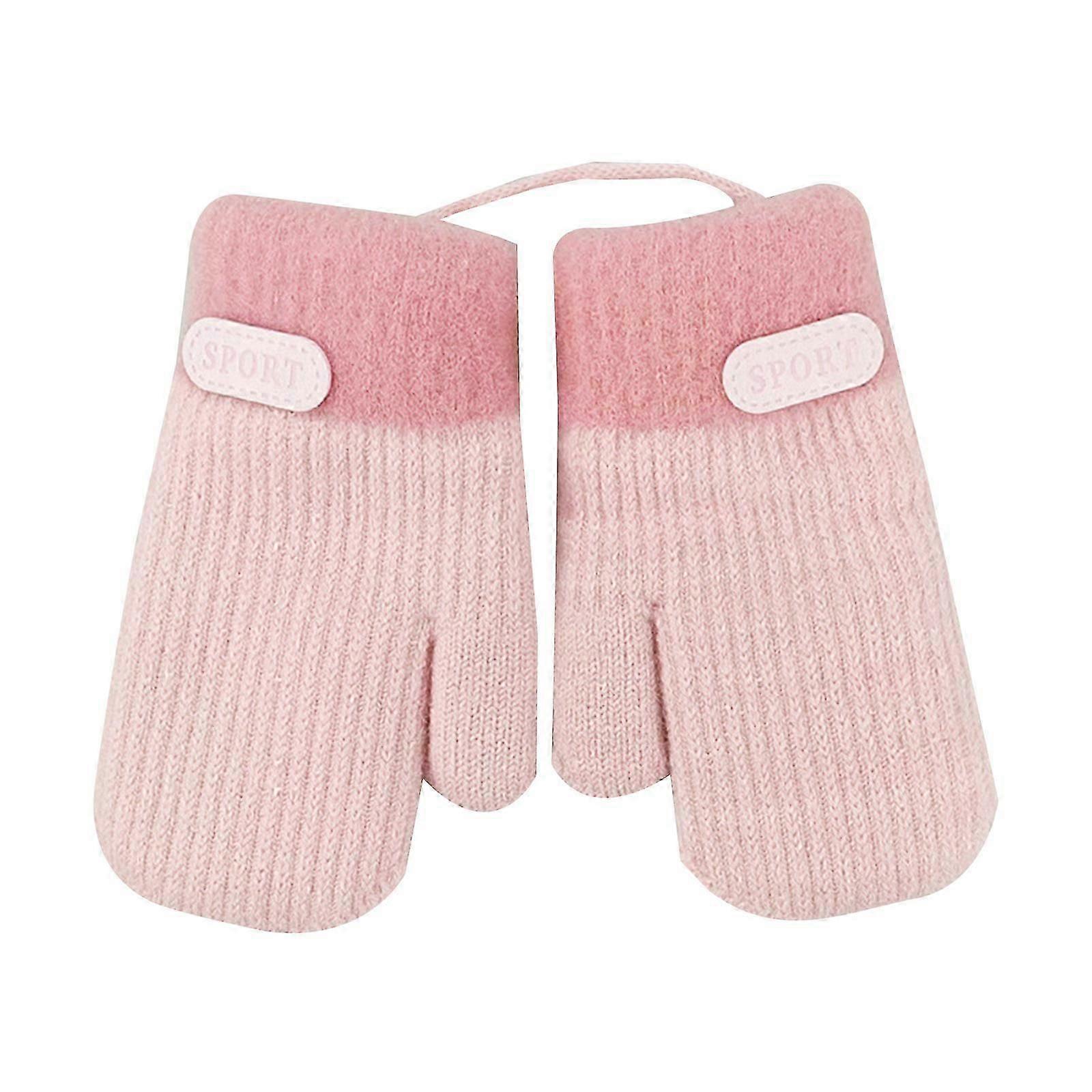 Kids' Warm Winter Gloves Soft Knit Mittens with Neck Strap Thick Hand Warmers Comfortable for Children