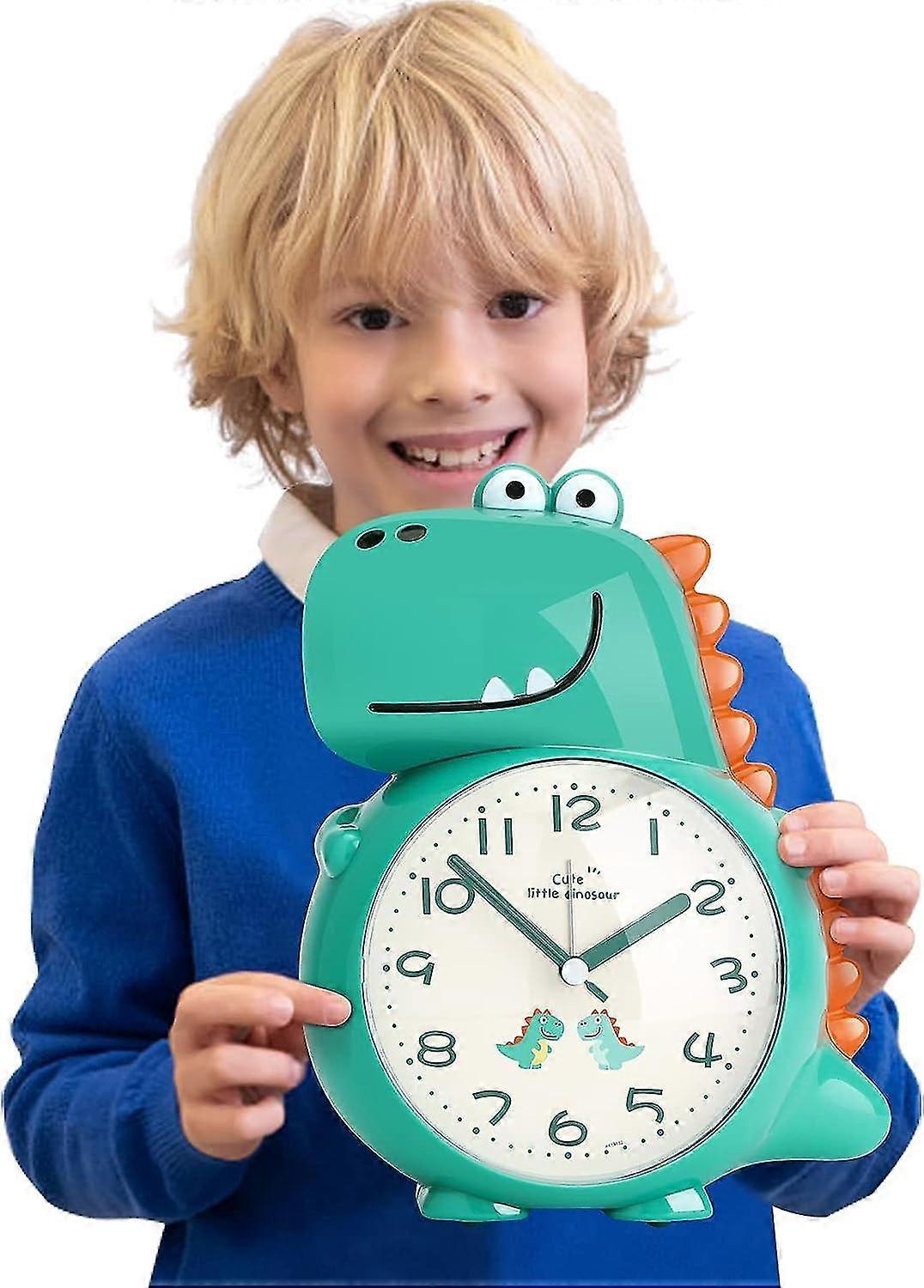 Kids Alarm Clock Boys,snooze And Night Light,non Ticking Analog Battery Operated Learning Clocks,time To Wake Up Bedside Clock, Dino Gifts For Toddler