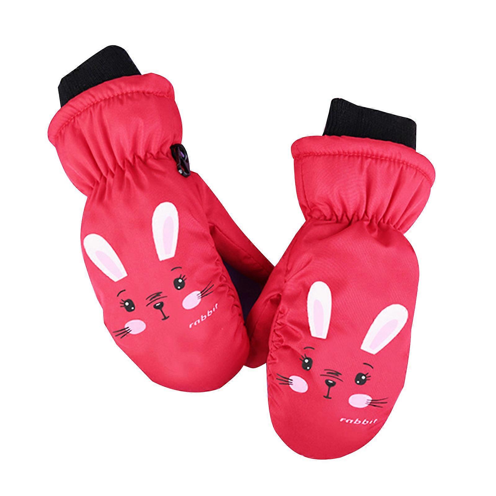 Children Windproof Gloves Stylish Toddler Ski Gloves Cartoon Kids Warm Gloves Thick Mittens Present for Boys Girls Gift Red 6 to 10Y
