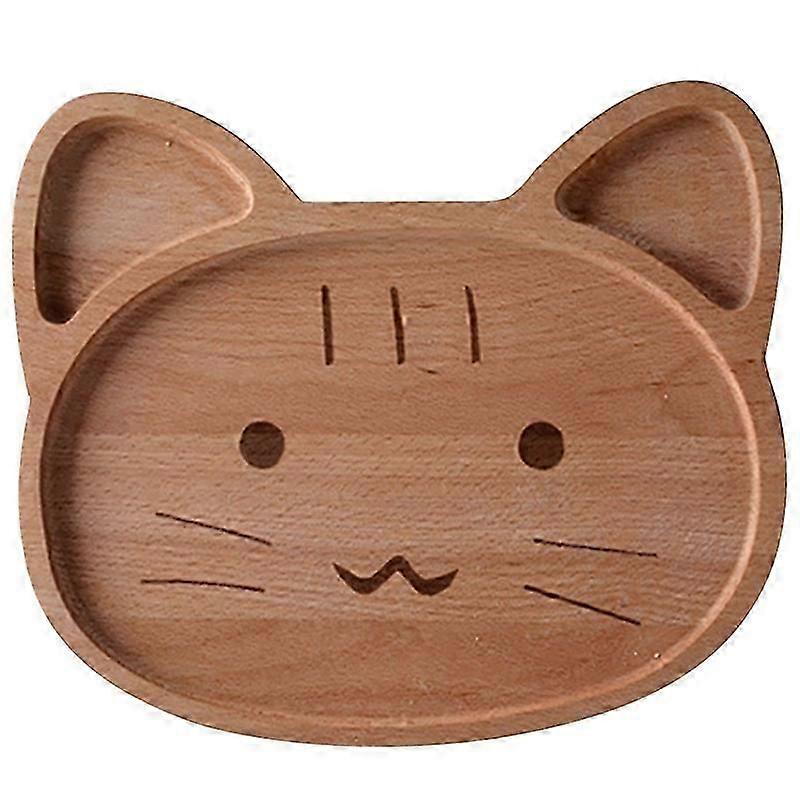 Children Kids Wooden Food Plate Tray Dish Natural Cute Cartoon Tableware Handcraft Animal Natural Tool, Cat