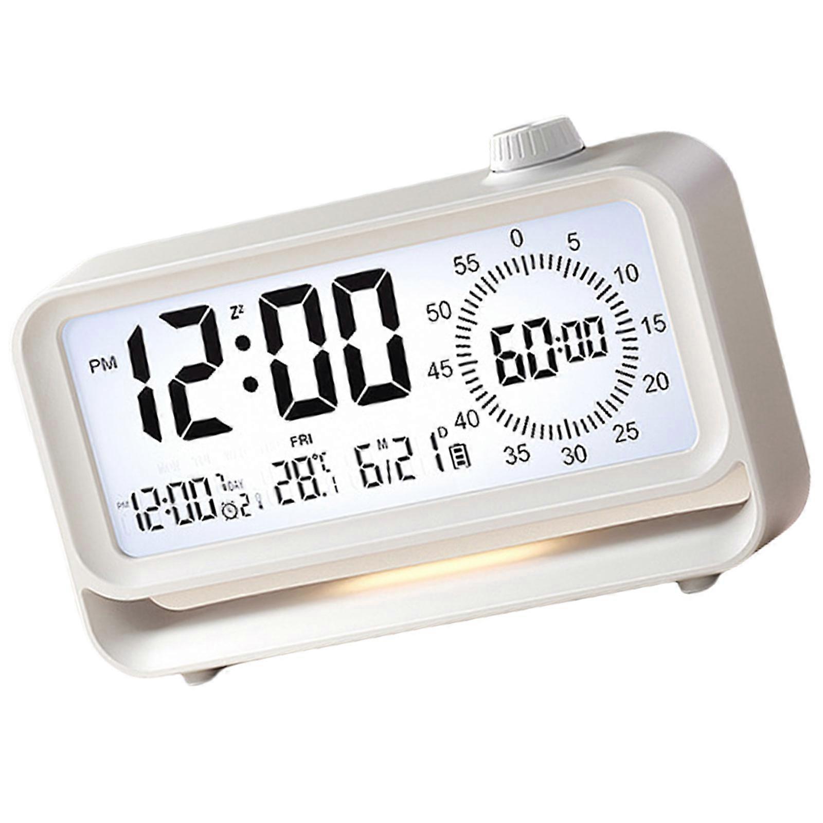 Kid Digital Alarm Clock Button LCD Time Reminder with Night Light Rechargeable Desk Clock for Home and School Use White