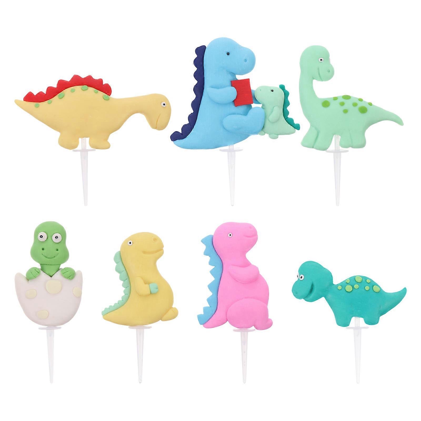 Dinosaur Cake Decorations in Assorted Color Made of Polymer Clay for Kids Party and Birthday Celebrations 7pcs