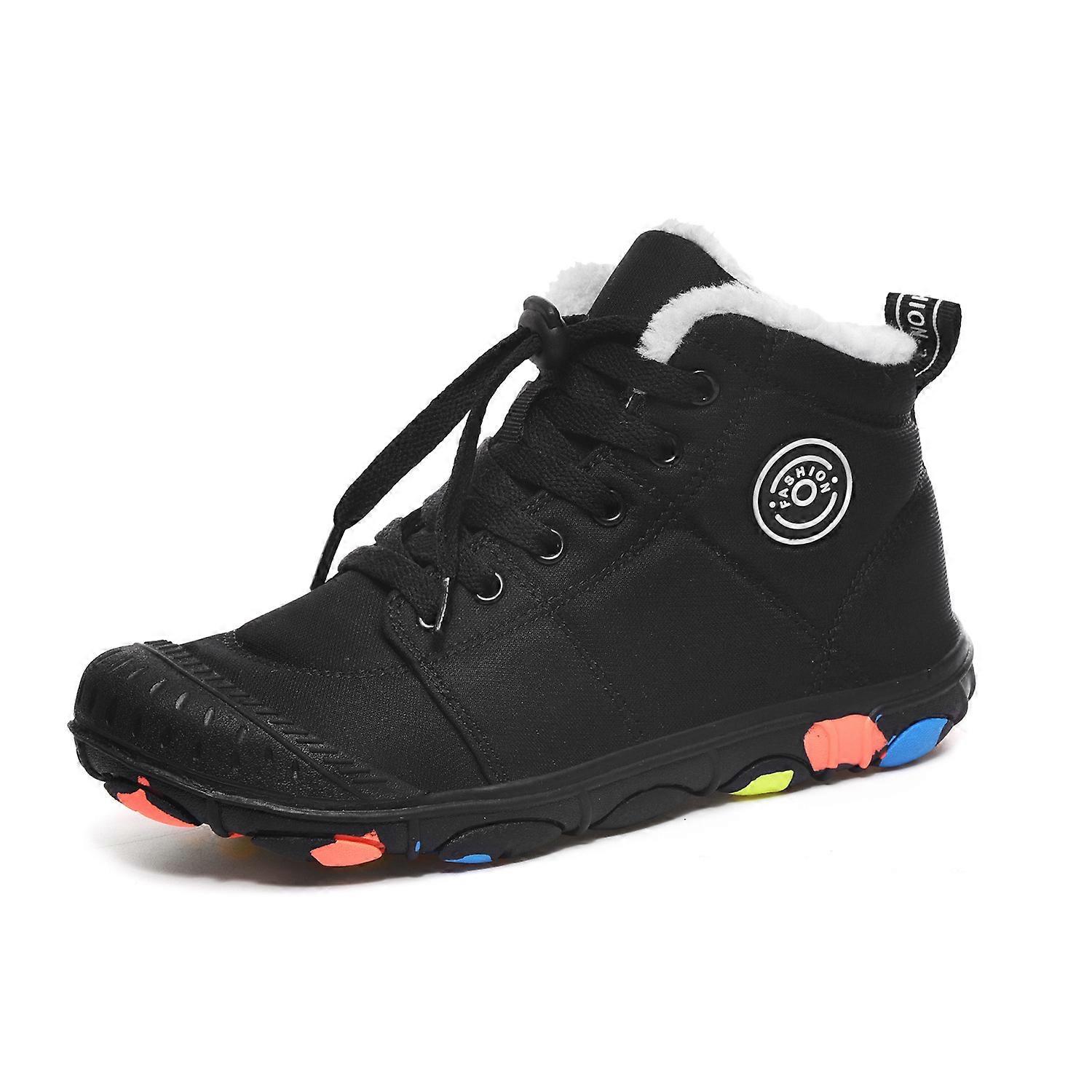 Child Unisex Winter Warm Black Snow Boots Cotton Shoe Lock Buckle