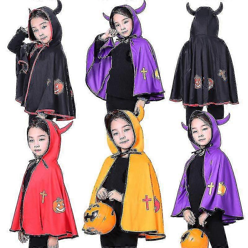 Child Demon Cape Witch Pumpkin Cape Cosplay Halloween Show Costume N