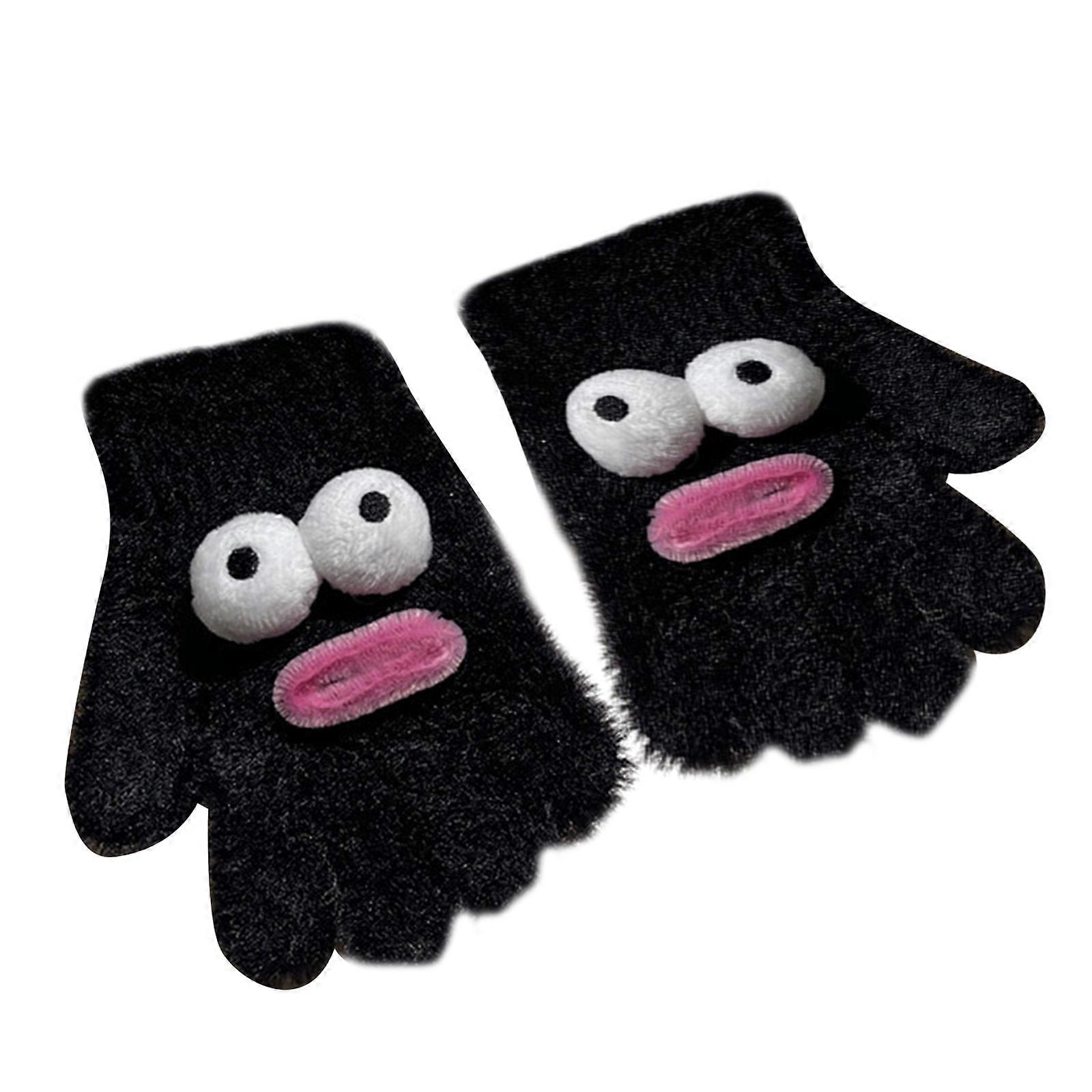 Children Cartoon Plush Gloves Full Finger Warm Mitten with Cute Sausage Mouth Decor Mittens for Children Winter Supplies Black pink mouth S