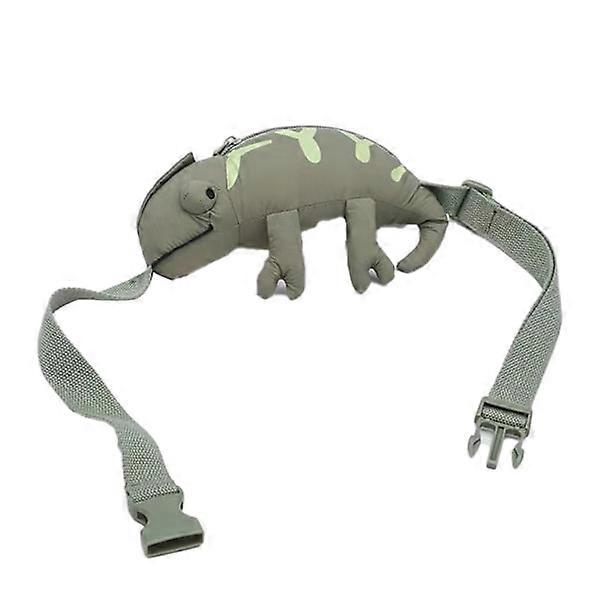 Children's cute animal-shaped shoulder bag adorable cartoon children's waist zipper canvas bag green free size