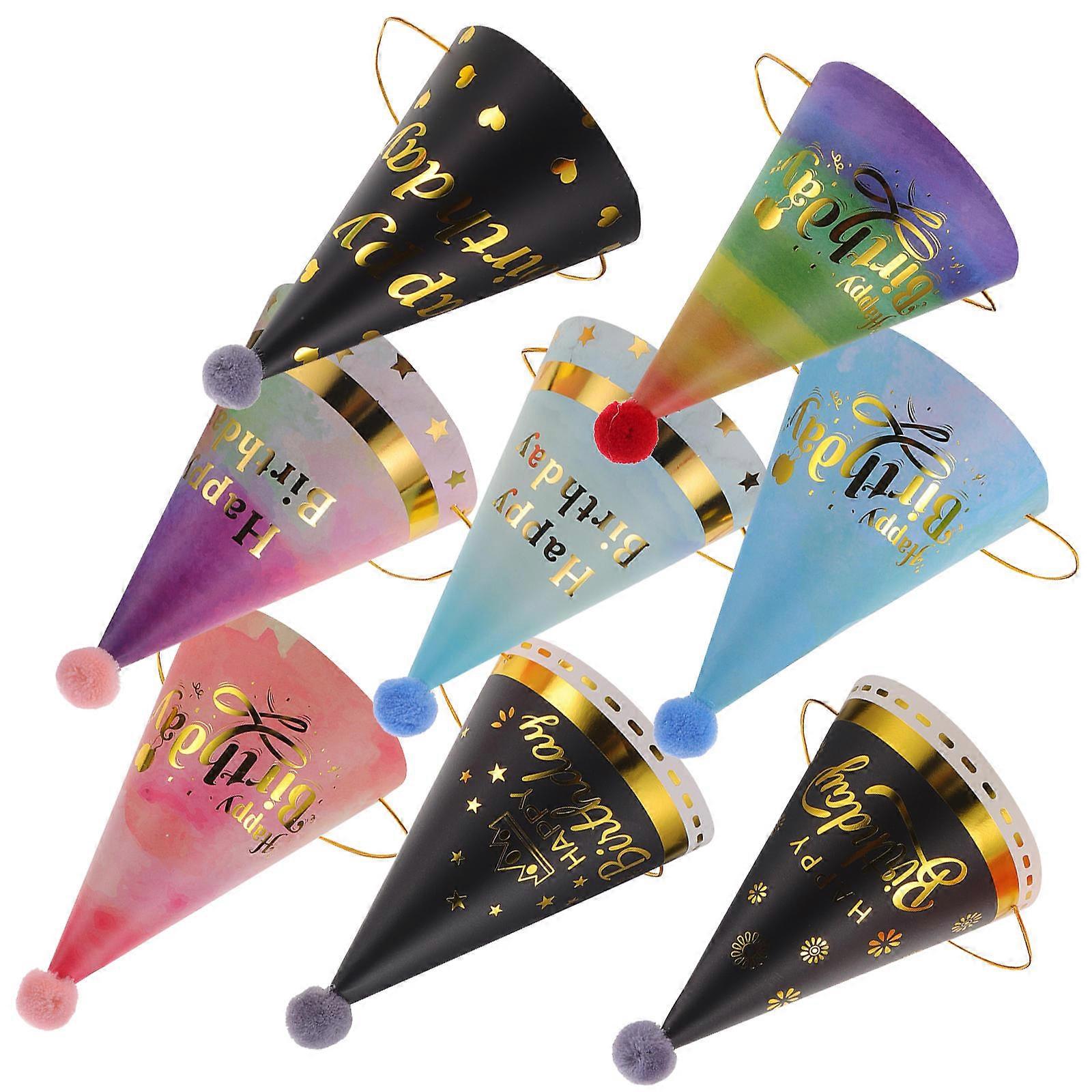 8pcs Fun Lightweight Birthday Party Hats for Kids, Cone Headwear for Celebrations, Festivals, and Photo Props