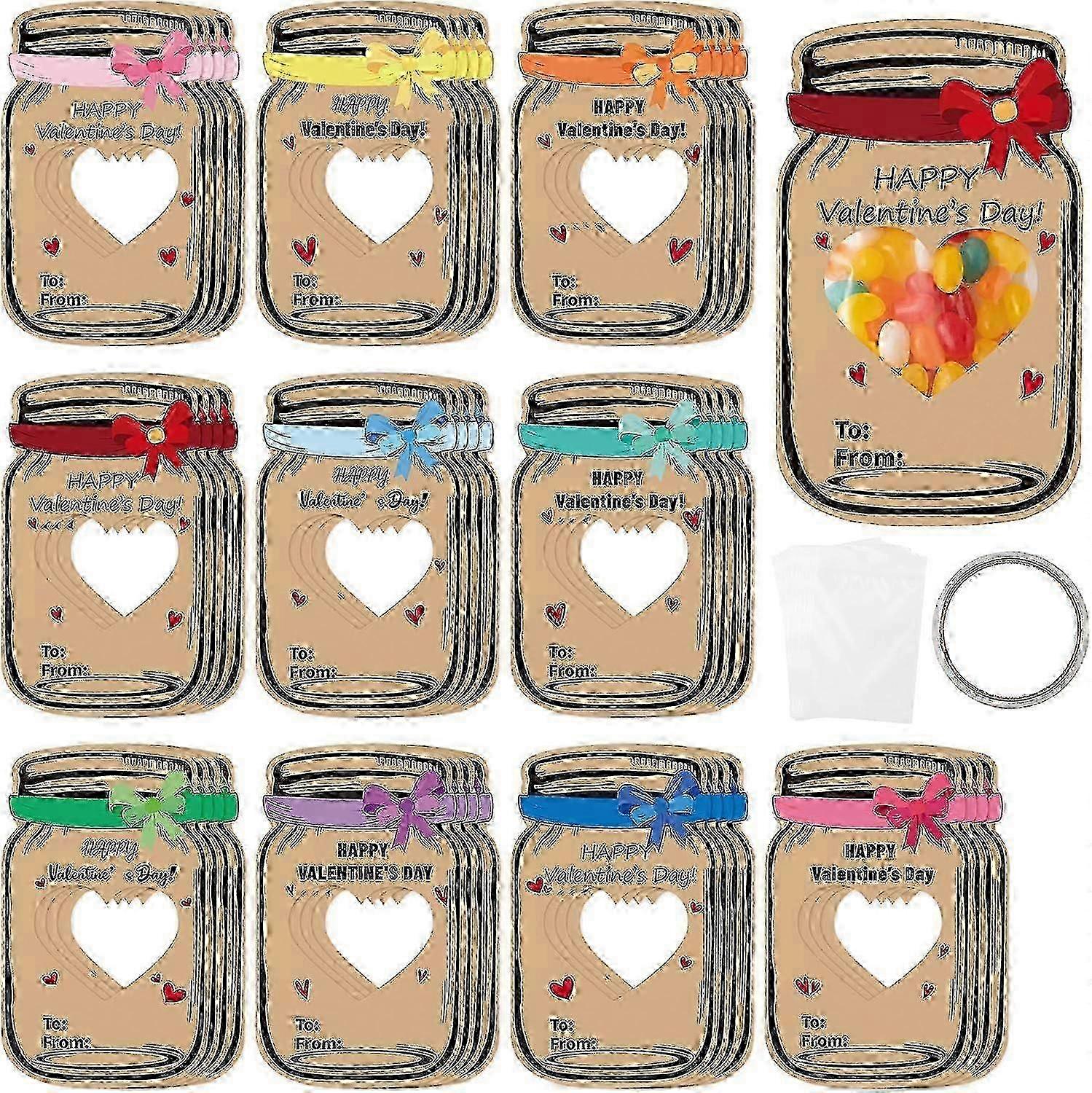 Colorful Valentine Gift Card Set for Kids: 30-Piece Pack of Happy Greeting Cards with Colorful Jars for Boys and Girls