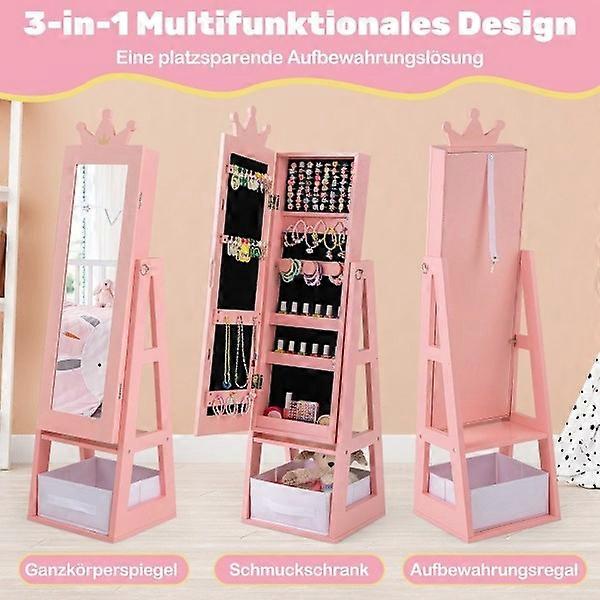 Children's Jewelry Cabinet 3 in 1 Tilting Mirror Cabinet with Full-Length Mirror Pink - Storage Organizer