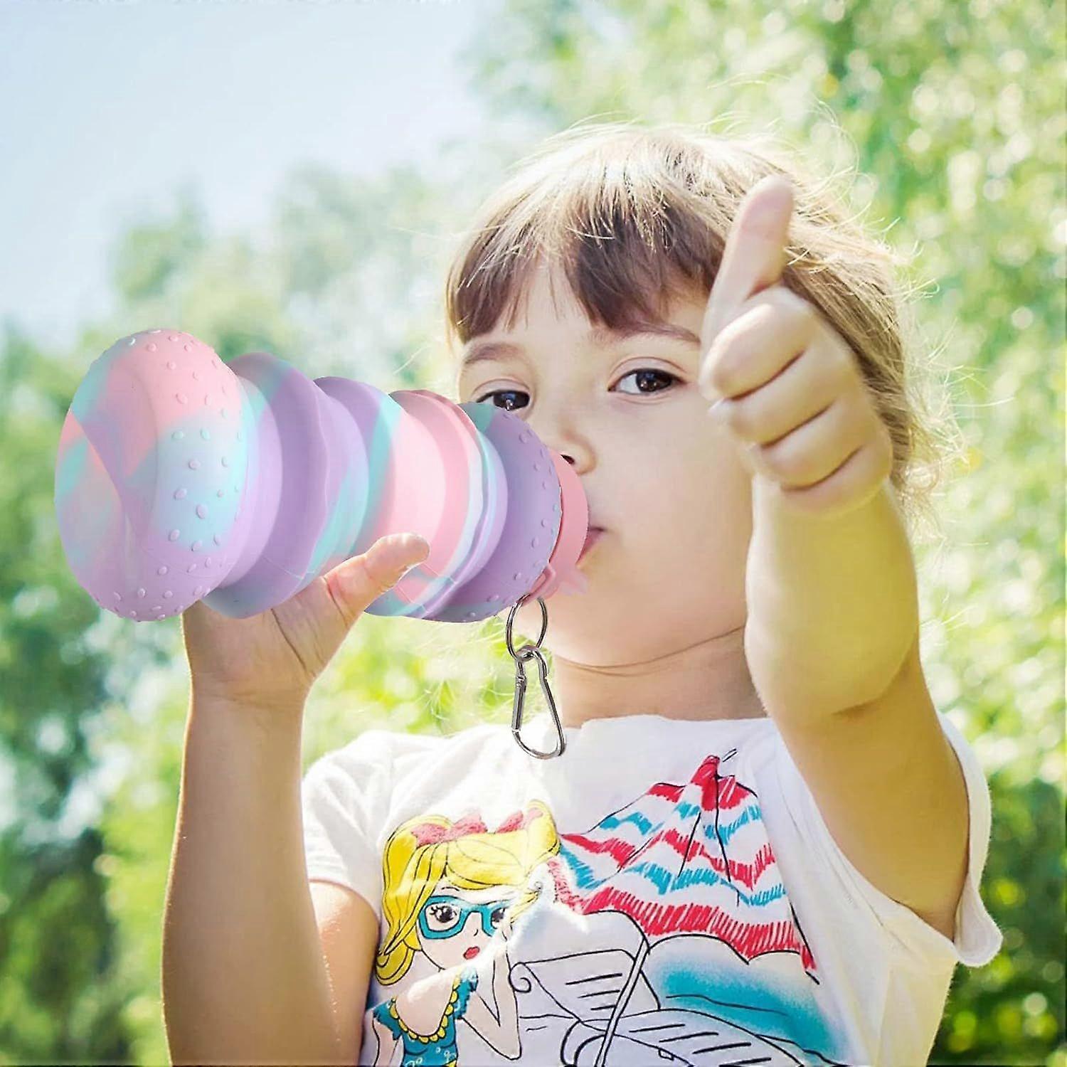 Wide Application: The kids sports water bottle is good for taking your water with you at school, picnic, games, hike, cruise or gym. When fully folded, the drinking cup takes the shape of a round football and it makes an ideal gift for children on birthdays, Children's Day, Halloween and Christmas.