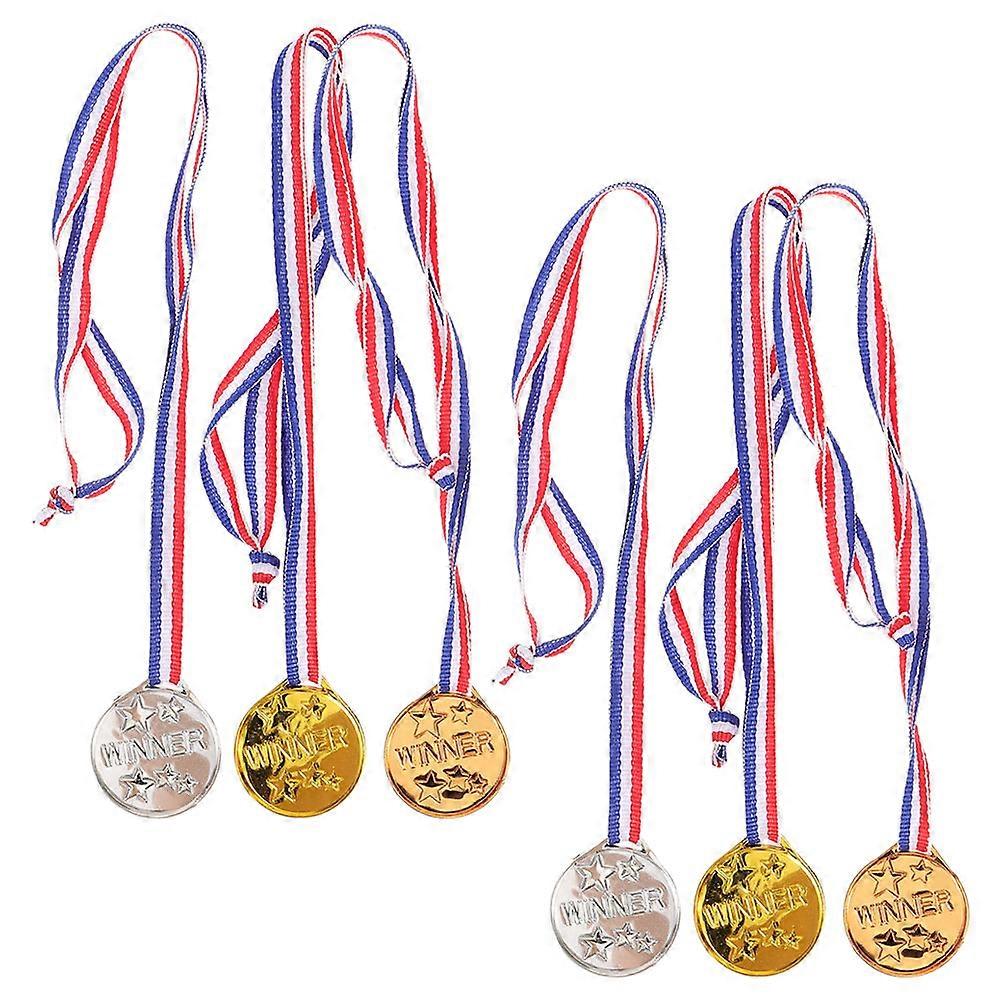Sports Medals For Kids 6Pcs Round Decorative Awards Assorted Color Recognition Events