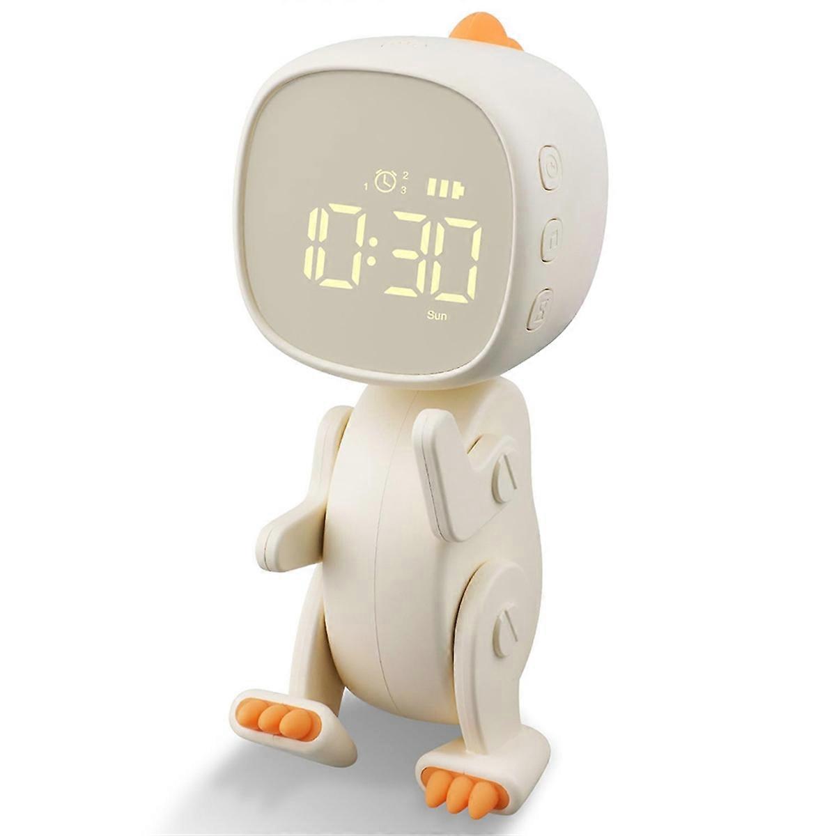 Children'S Digital Alarm Clock, Three Alarms, Night Light Timer Beige