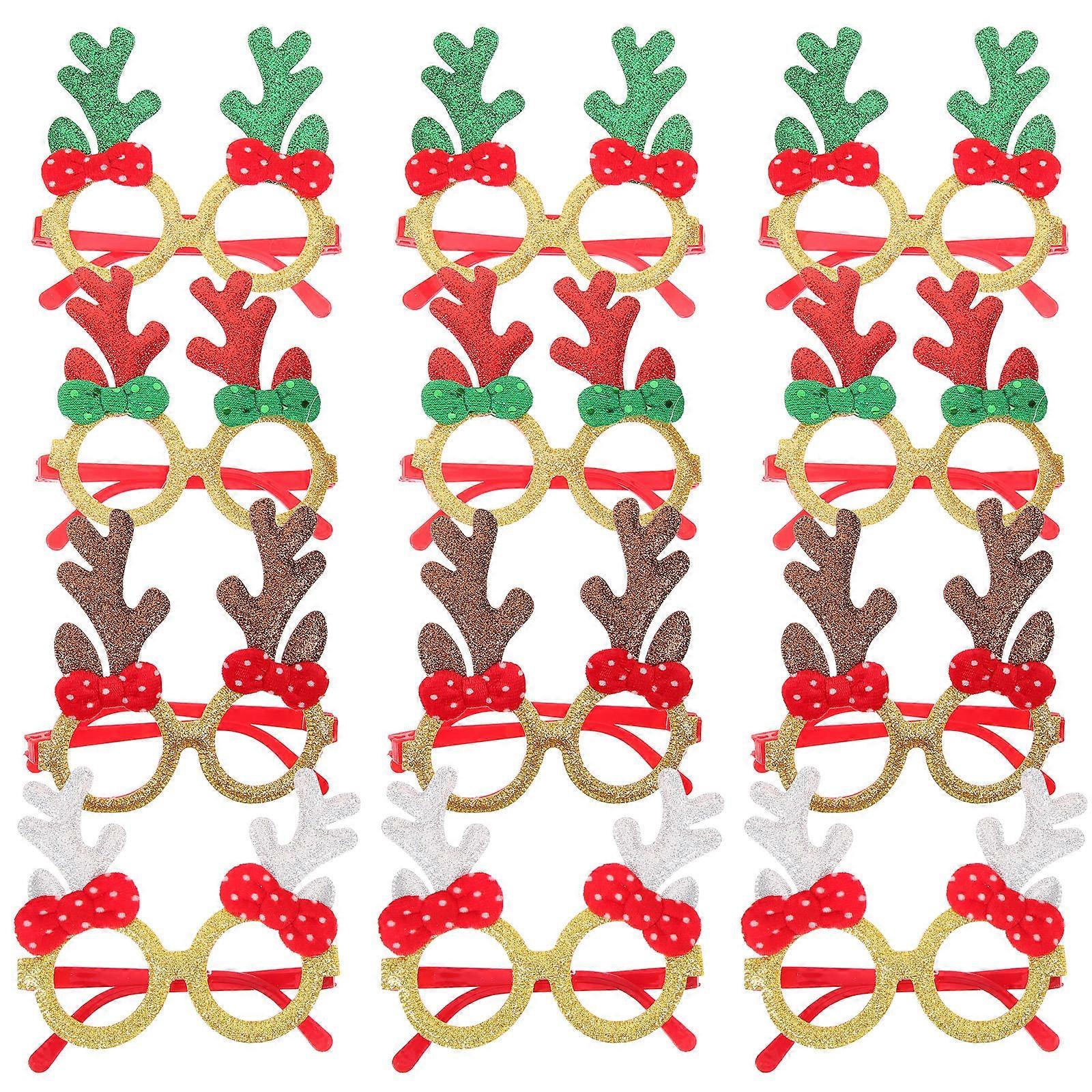 Party Sunglasses For Kids Green Reindeer Antler Glasses Christmas Decoration Costume Prop for Birthday Party 12Pcs