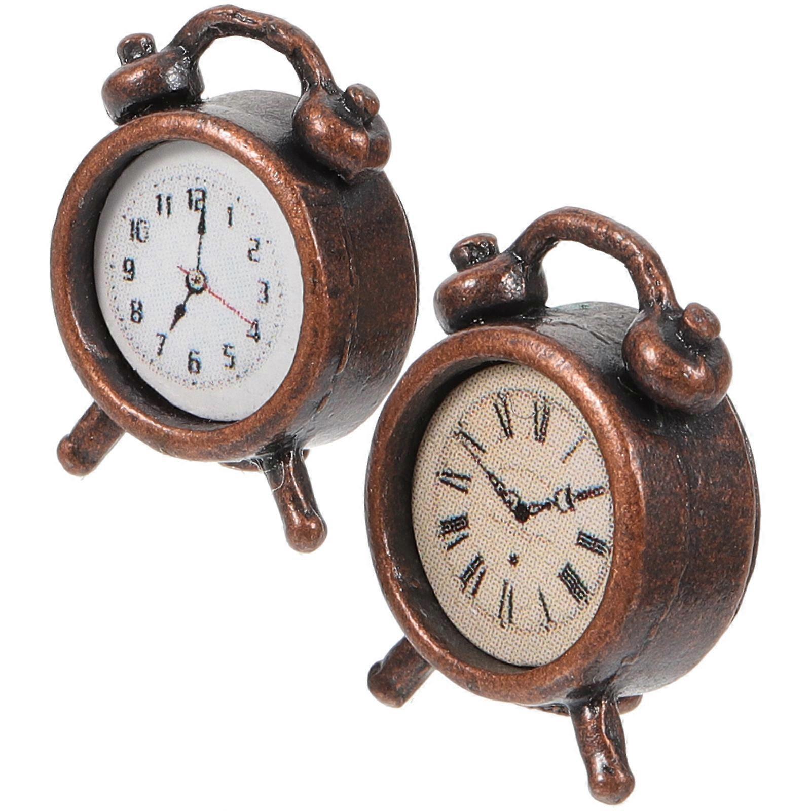 2pcs Mini Dollhouse Alarm Clocks for Kids Pretend Play Toy, Vintage Decor, Alloy, Assorted Colors, Photo Props, 1/6 1/12 Scale