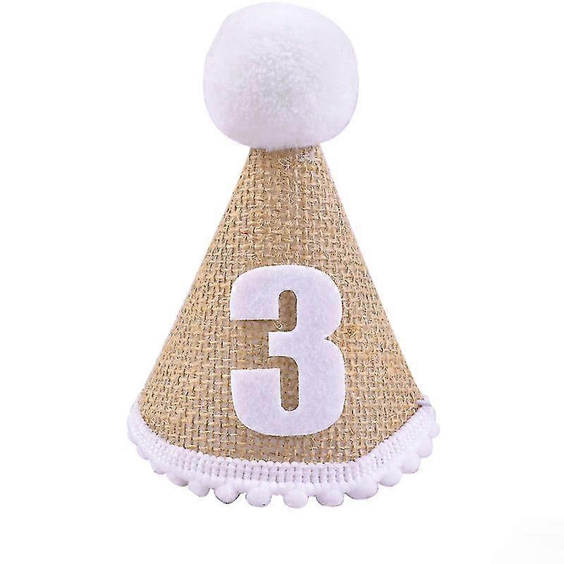 Children's Linen Birthday Hat Birthday Party Decoration Pom Hat Birthday Dress Up (style 1)