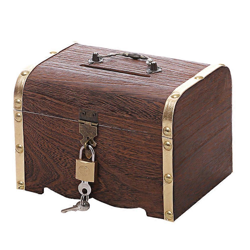 Childrens Handmade Treasure Box Vintage Style Small Treasure Chest Wooden Piggy Bank Coin Change Holder Adults Office Use 1Pcs