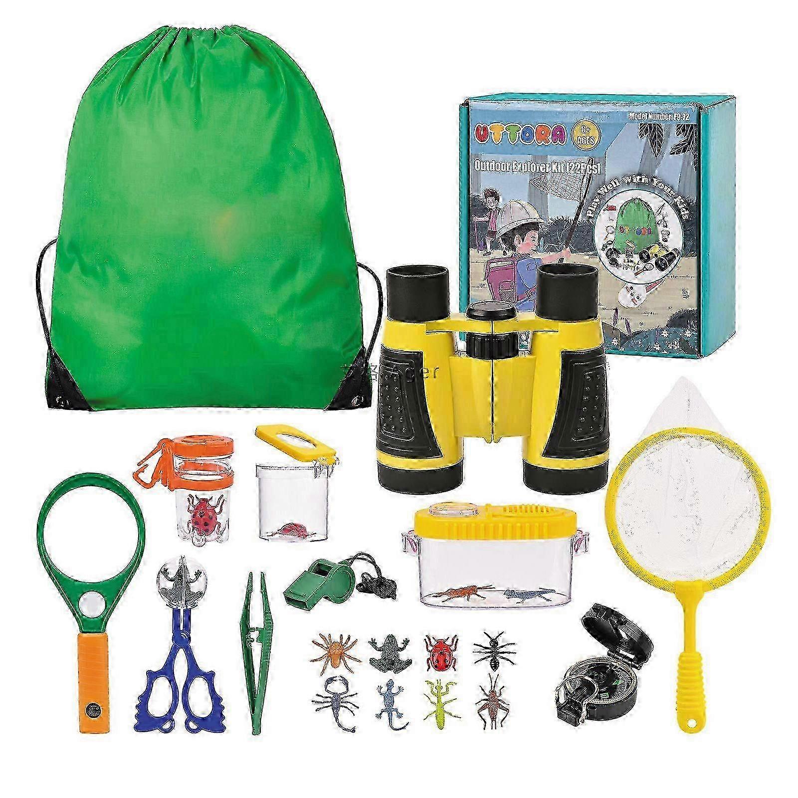 Researcher Set for Children, Binoculars for Children, 22-Piece Explorer Set with Insect Catcher, Compass, Cup Magnifier, Microscope and More - Camping