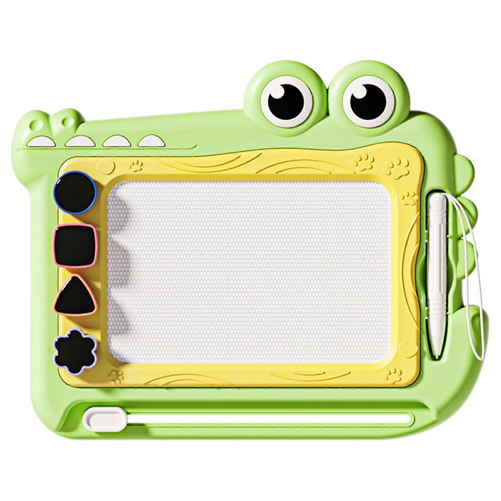 Magnetic Doodle Board for Kids | Crocodile Erasable Drawing Pad with 4 Stamps | Green Preschool Art Toy for Travel Activities
