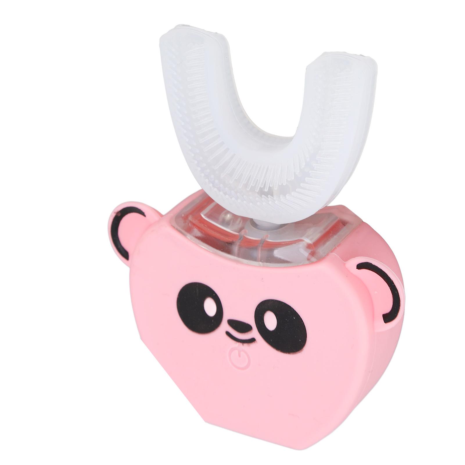 Children Automatic Electric Toothbrush Silicone Smart Rechargeable U Type Mouth Cleaner for 360 Degree Mouth Cleansing Pink