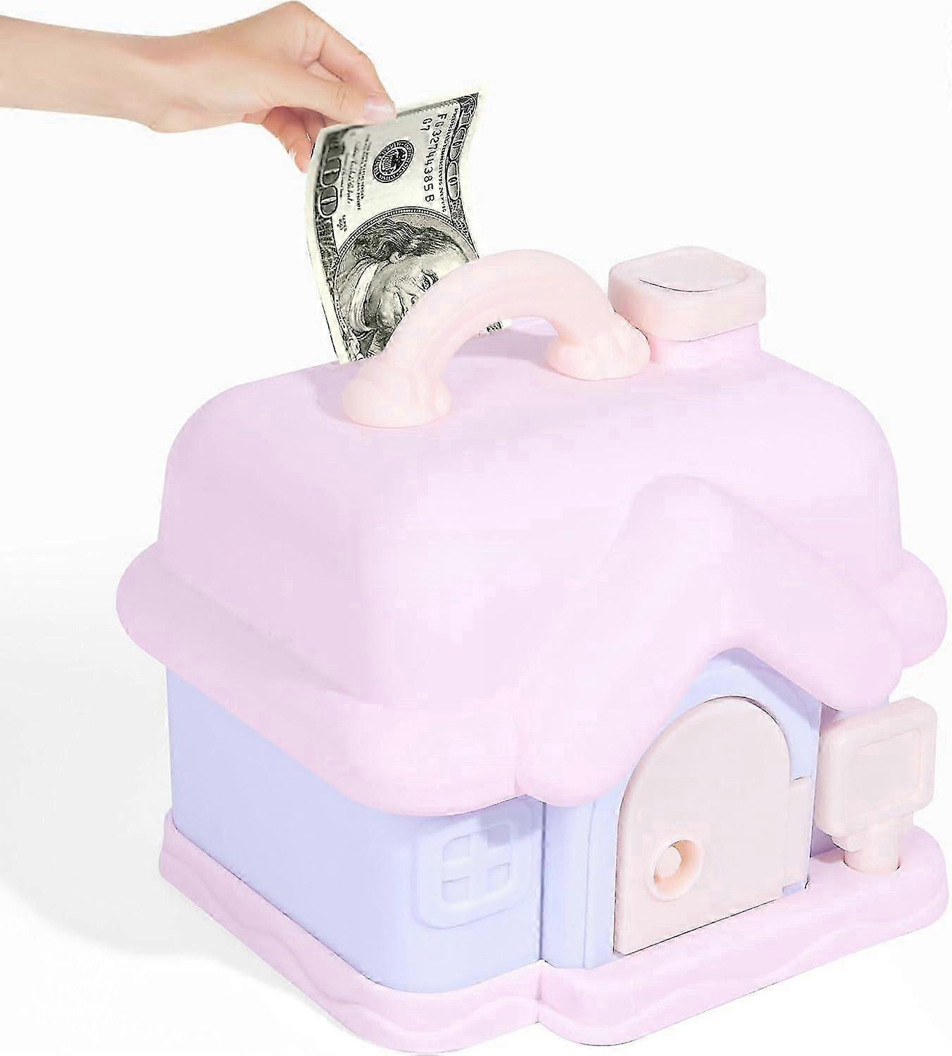 Money Box House Bank for Kids, Safe Saving Box for Cherishing Money (Pink)