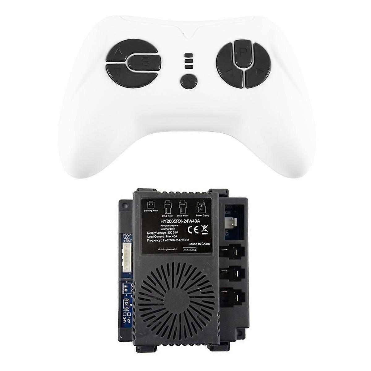 Name:Children's electric car Bluetooth remote control receiver and high Quality How to determine if the control box is suitable for your car? Open your broken electric riding bike and check the control box. If the appearance of the control box is the same, this part should fit your car. Type:A:HY2005RX-24V/40A Receiver+Controller Colour:White & Black Material:Plastic Package Contents: 1 * Remote Controller 1 * Receiver Only the above package content, other products are not included. Note: Light reflection and different displays may cause the color of the item in the picture a little different from the real thing. The measurement allowed error is +/- 1-3cm.