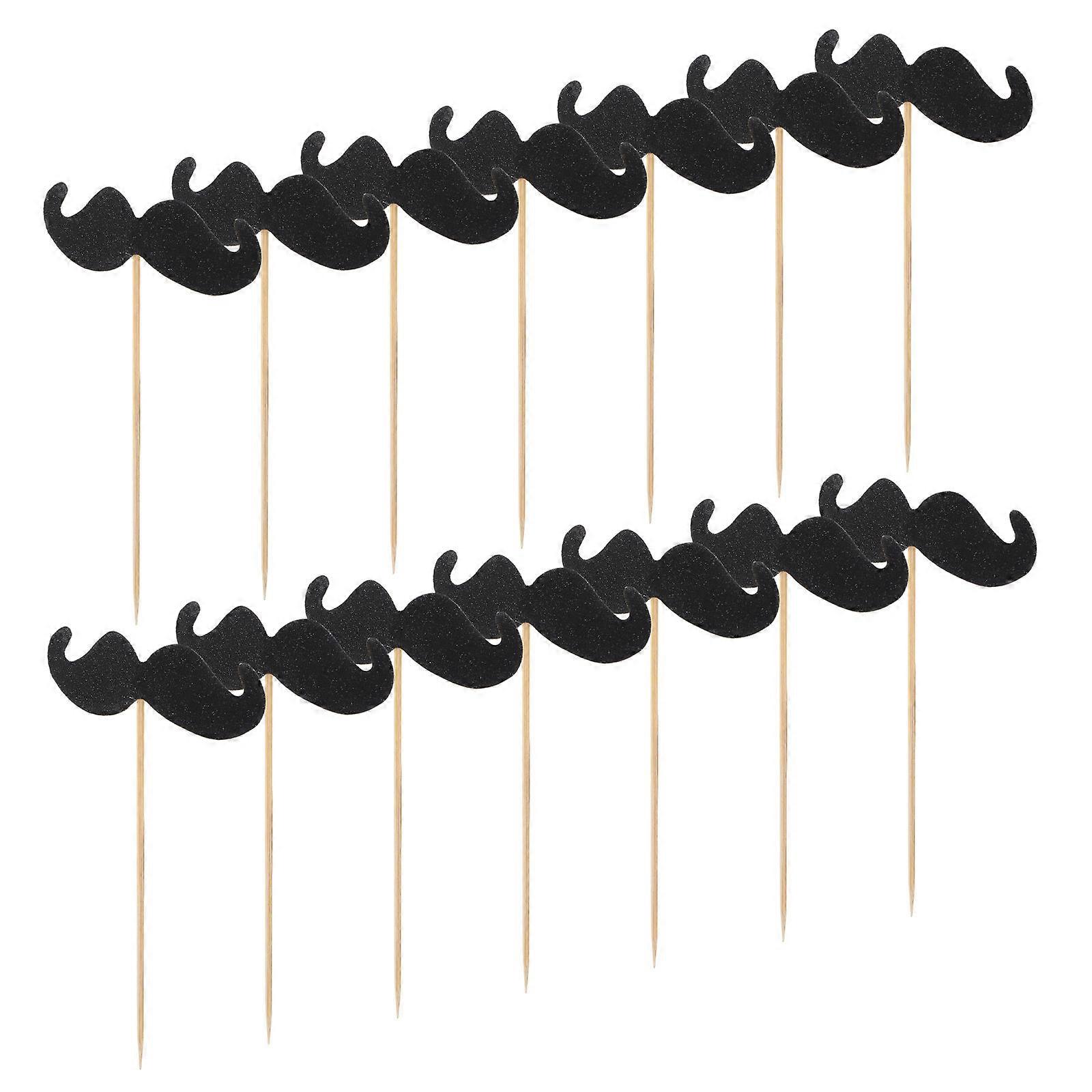 Funny Moustache Cake Topper Picks for Kids Birthday Party Decor 40pcs Black Paper and Bamboo