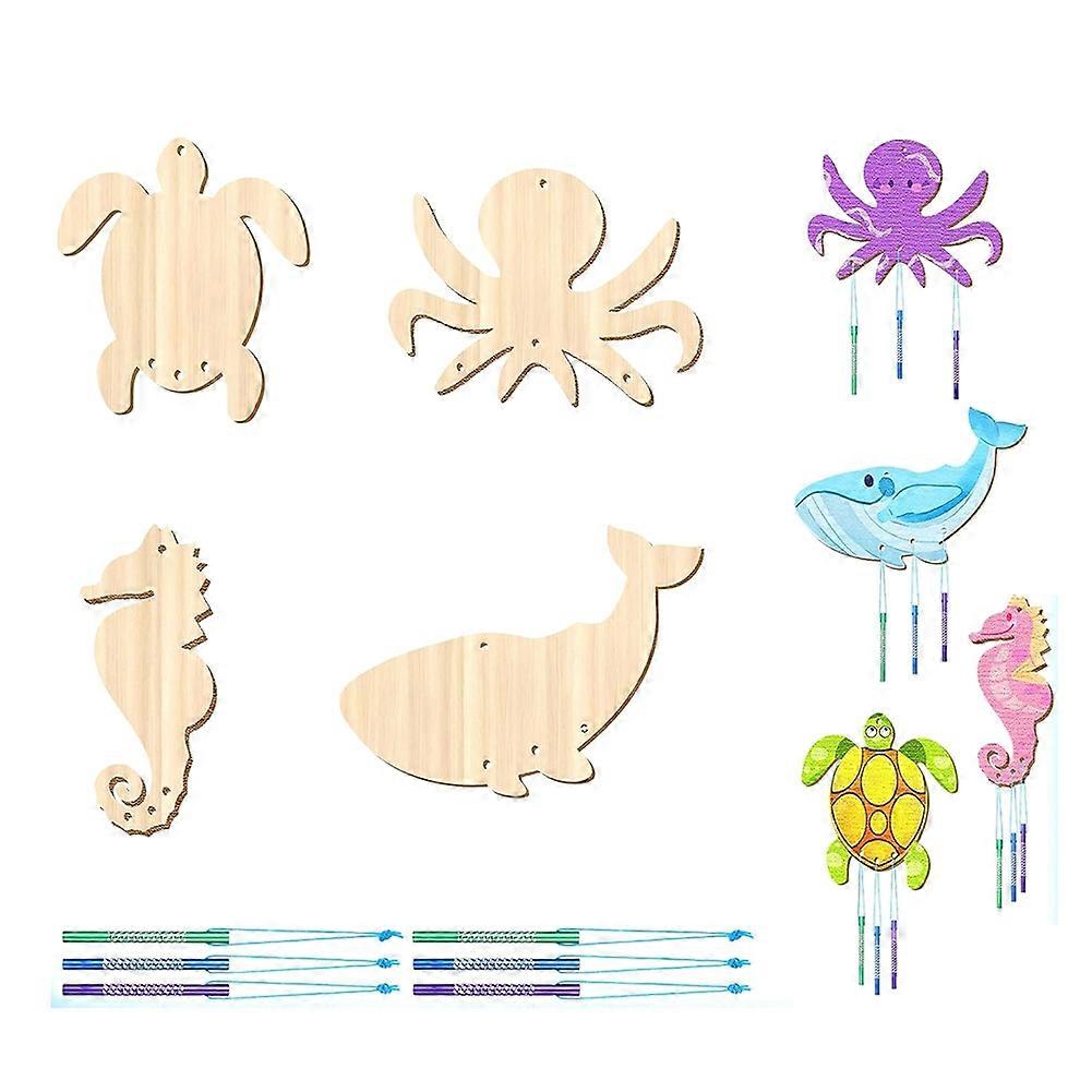 Children'S Wind Chime Ornaments DIY Painted Pendant,Marine Animal Set