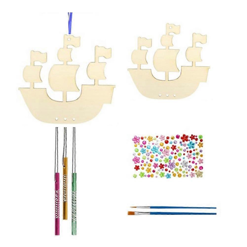 Children'S Wind Chime Ornaments DIY Painted Pendant,Pirate Ship Set