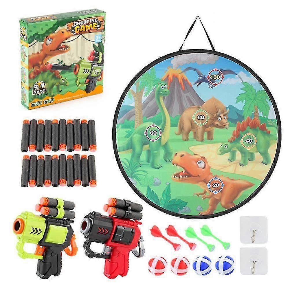 3 in 1 Cartoon Dinosaur Dart Board Set for Kids - Safe Indoor Outdoor Dartboard Shooting Toy for Boys and Girls, Party Sports Games