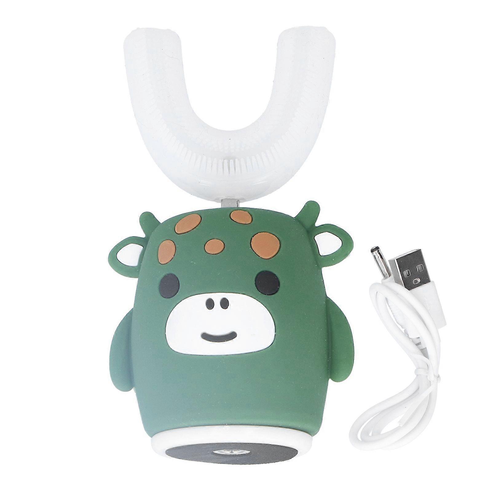 Children U shaped Toothbrush Kid Travel Portable Cartoon Cute Electric Toothbrush GreenYMMR)