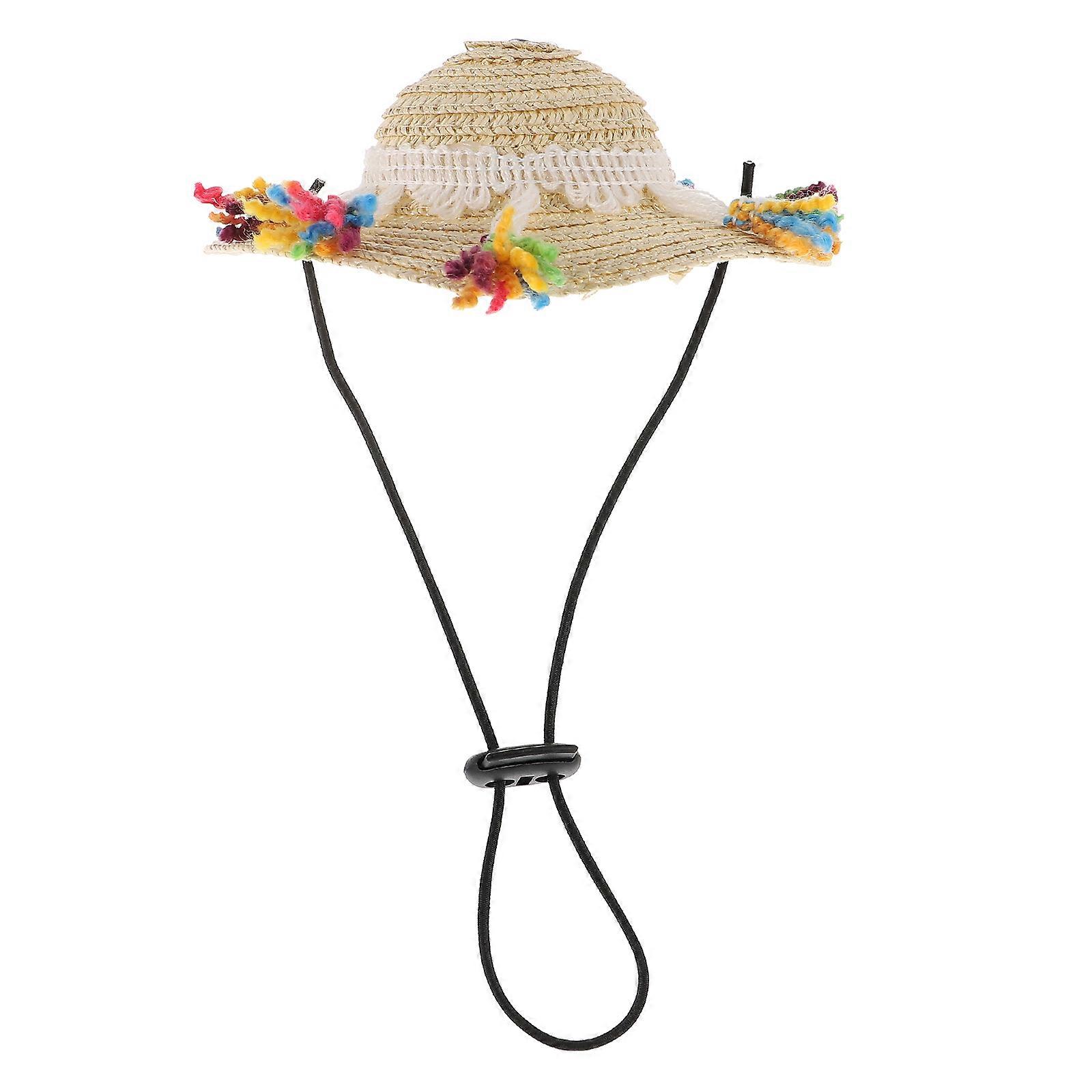 Puppy Sun Bucket Cap -Woven Dog Hat Adjustable Hat Synthetic Material Costume Accessory For Dog Cat Small Animals 1Set