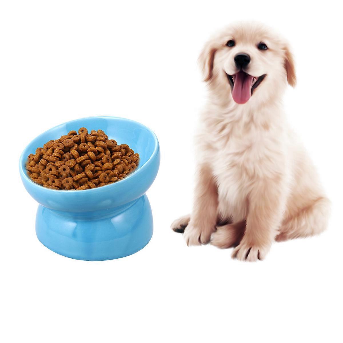 Durable Light Blue Ceramic Pet Feeding Bowl for Puppies – Slanted Mouth Design for Safe, Healthy Use