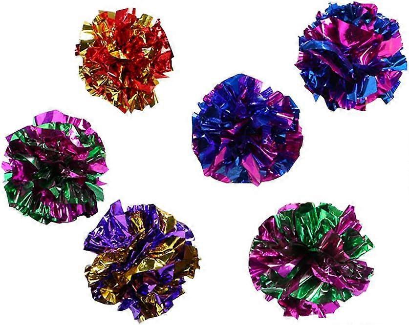 Funny interactive cat toys or cat exercise toys, to calm your cats in spring.Made of soft, lightweight mylar texture in shiny metallic colors.You kitten will go crazy with the cat ball toy that squints sound when playing.Balloons measure 1.5 inches in width, easy for cats to bat, chase and jump.Package: 6 pcs mylar crinkle balls cat toys.
