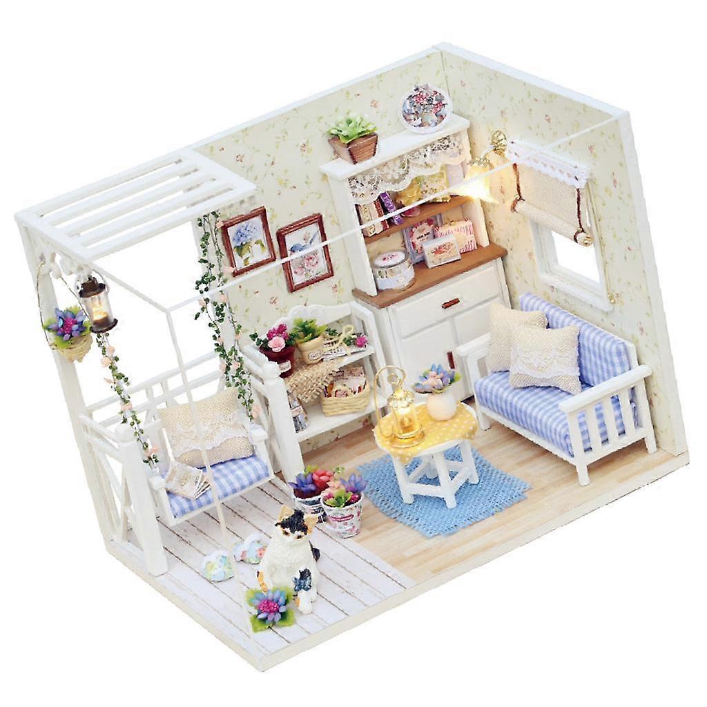 Kitten Diary-DIY Handicraft Miniature Dollhouse Furniture Toy Set with Dust Cover & LED Light Kids Toy Gift Playset