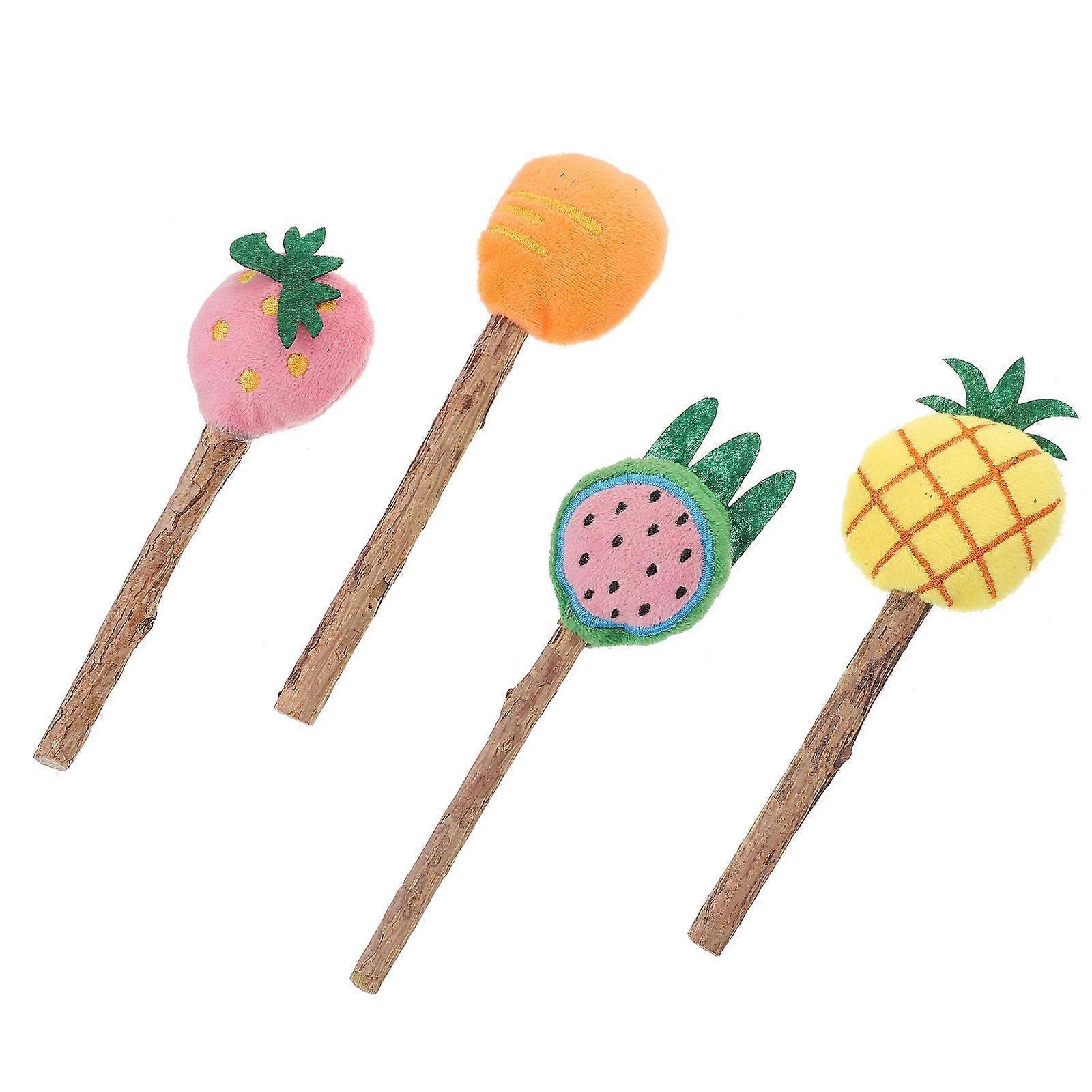 Kitten Enrichment Toys Interactive Plaything Cartoon Fruit Shape Cat Accessory 4Pcs Stress Relief Interactive Play