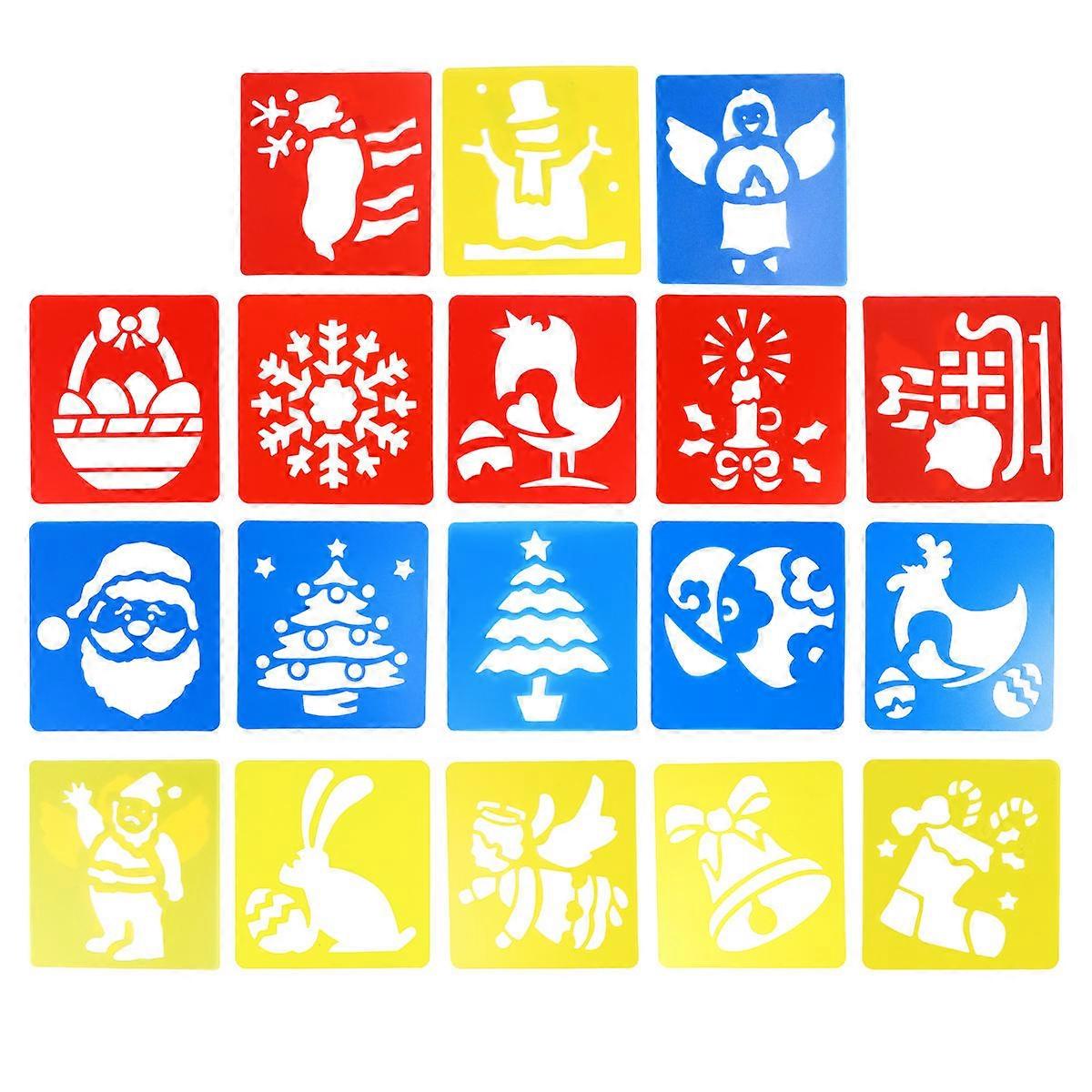 Seasonal Painting Stencils Christmas Decoration Drawing Aid Square Assorted Color 18Pcs