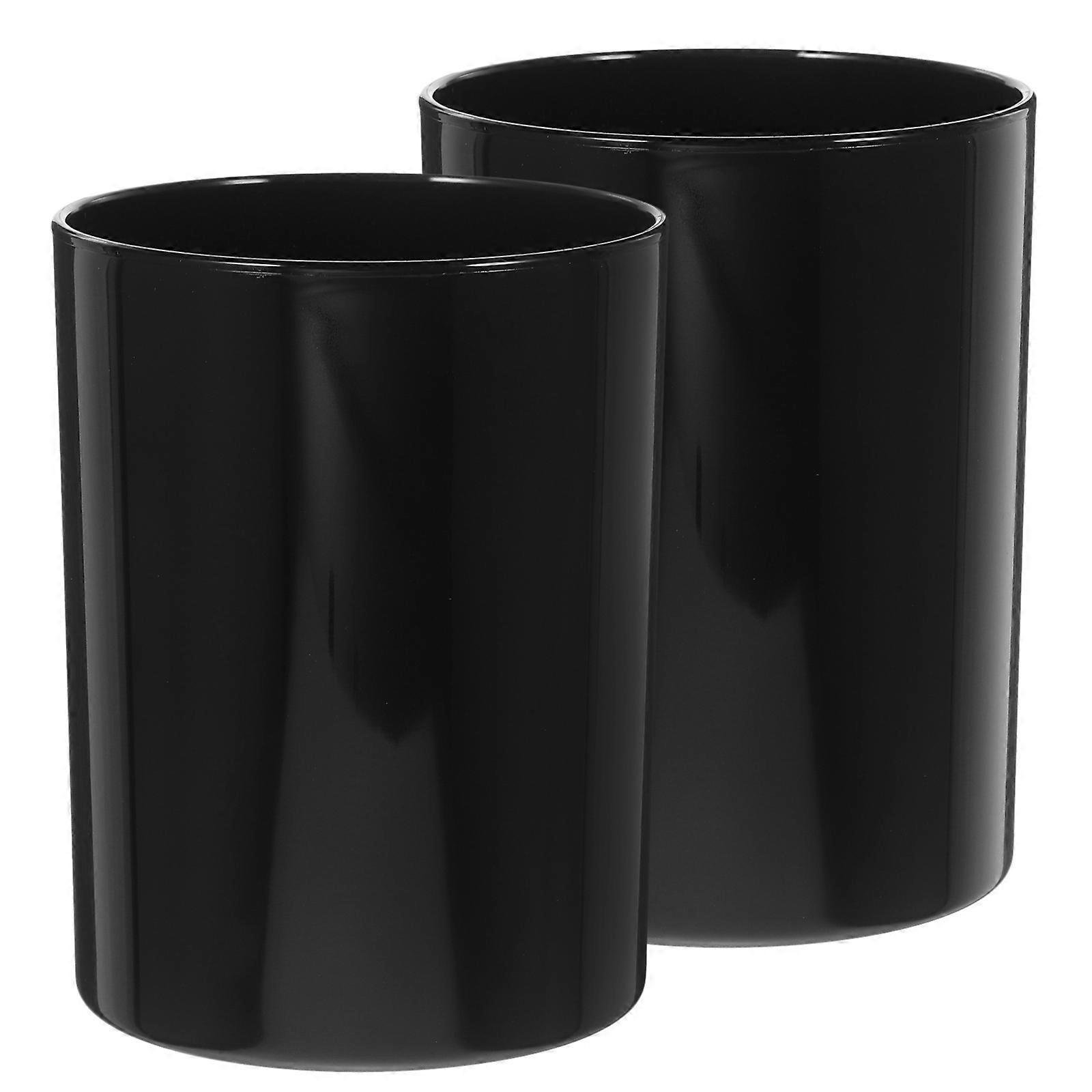 2pcs Round Plastic Pen Holder Desk Organizer for School, Classroom, Office – Reusable Pencil & Makeup Brush Storage Container for Teachers – Black