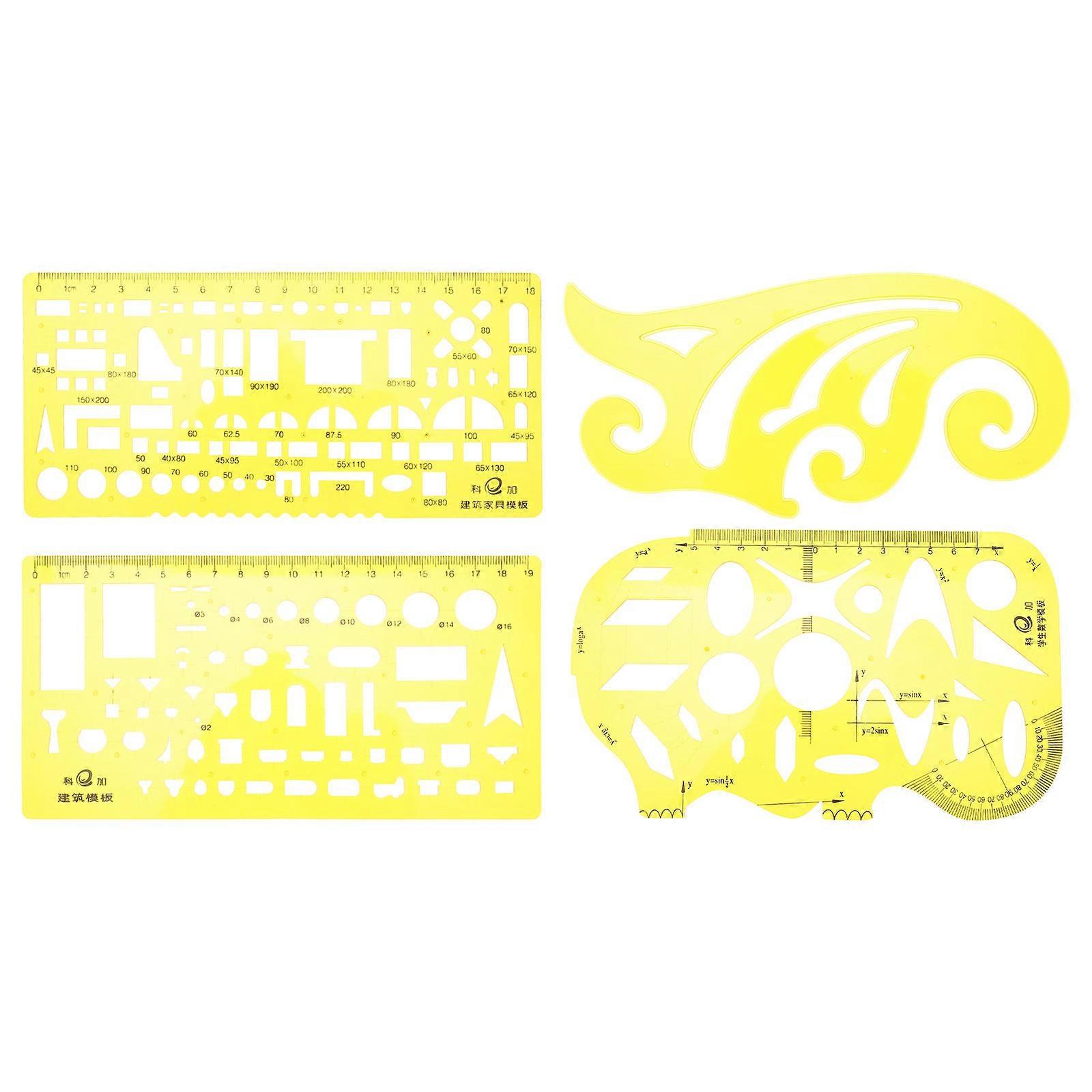 Orange Plastic Drawing Ruler for School and Craft Supplies 4 Pieces Geometric Templates