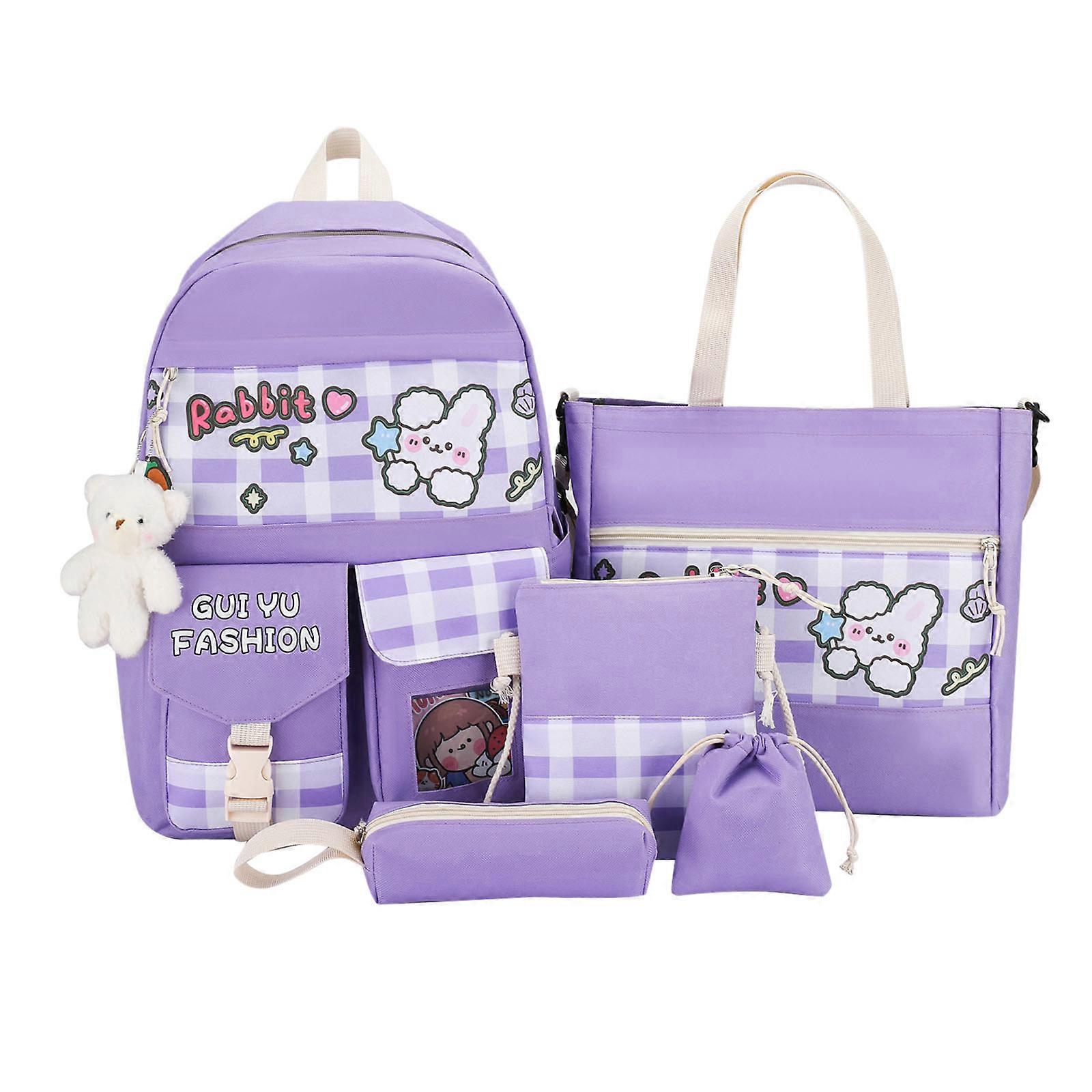 5pcs Cute Backpack Set for School Bookbag Teens Girls Daypack Cute Large Capacity Shoulder Bag Handbag Pencil for Case Purple