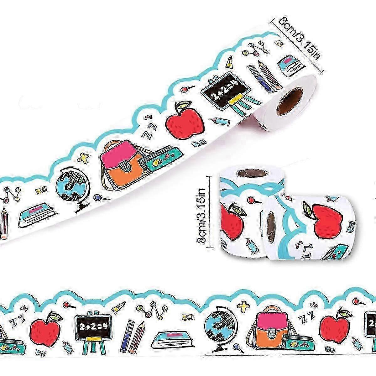 CELEBRATE BACK TO SCHOOL: Adorn your classroom with this vibrant bulletin board border, infusing brightness and a scholarly theme into your environment. EXTENSIVE SUPPLY: Each package contains a roll of 8cm or 3.15 inch wide border trim, totaling 20.7 meters or 67.9 feet in length. This generous provision ensures you have ample material to decorate large spaces or multiple rooms, enhancing cohesion and thematic decoration across your educational setting. PREMIUM CONSTRUCTION: Crafted from high-quality paper, this border trim is designed for easy application and removal. The self-adhesive back simplifies setup, allowing fast, mess-free application to bulletin boards, blackboards, and whiteboards, making decorations and updates a breeze. VERSATILE DECORATION POTENTIAL: perfect for enlivening back to school parties, educational activities, and everyday classroom aesthetics. Use it to decorate bulletin boards, classroom walls, , stairs, desks, and more. Its captivating design also serves as an excellent backdrop for photo and scenes. DIY FRIENDLY: With enough length to cut and customize, this trim border encourages creativity. You're only limited by your imagination - trim, shape, and tailor it to fit any space or project. Engage students in a fun DIY decoration project, fostering creativity and teamwork in a hands-on way. Colour:White Material:Coated paper and self-adhesive Size:20.7m long x 8cm wide Package Contents: 1 roll x Bulletin Board border stickers Only the above package content, other products are not included. Note: Light reflection and different displays may cause the color of the item in the picture a little different from the real thing. The measurement allowed error is 1-3cm. Note: Due to the light and screen setting difference, the item's color may be slightly different from the pictures. Please allow slight dimension difference due to different manual measurement.