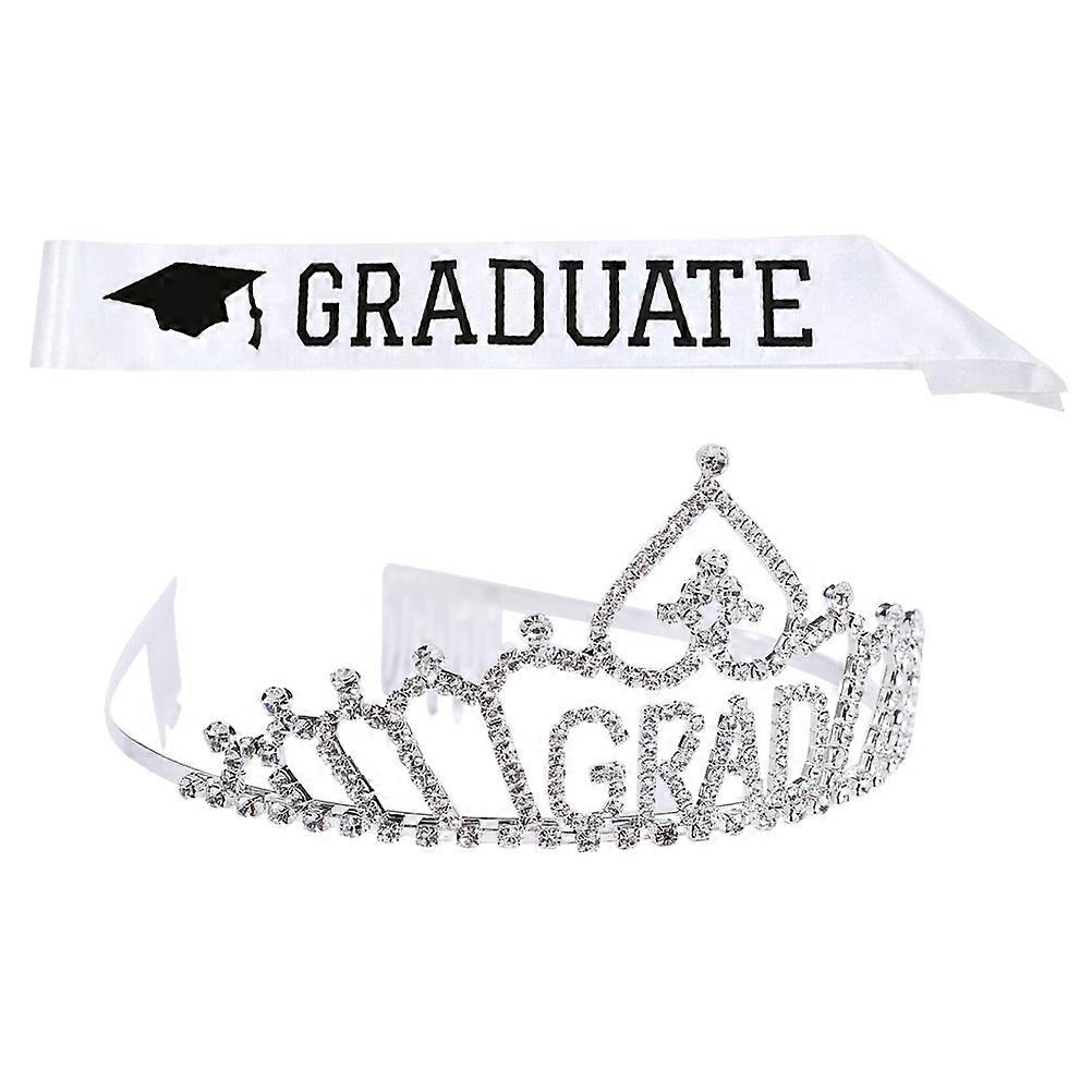 School Leavers Sash and Crown Set Graduation Etiquette Belt and Alloy Crystal Crown Set Graduation Party Assorted Color Festive Decor 2Pcs in 1Set