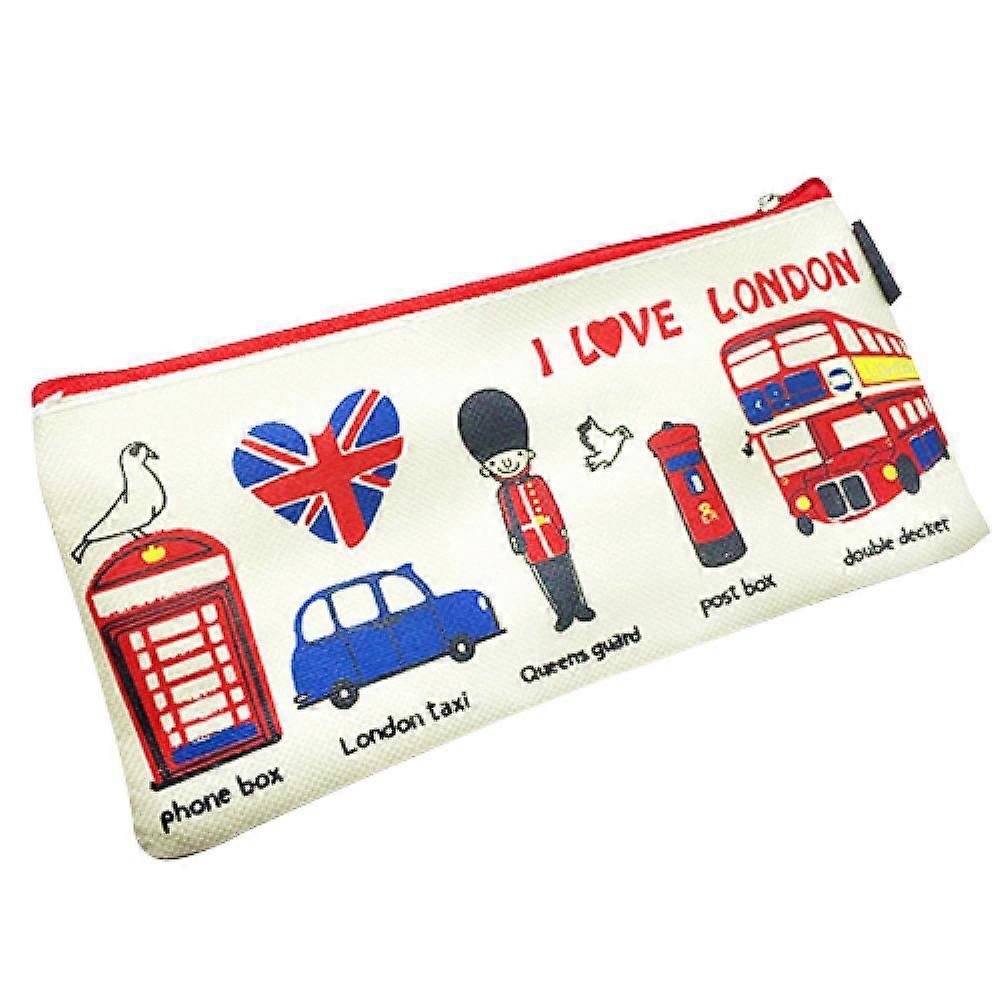 Students Pencil Bag Pen Case Pencils Pouch Cartoon London Style Zipper Cosmetic Pouch Coin Purse School Supplies