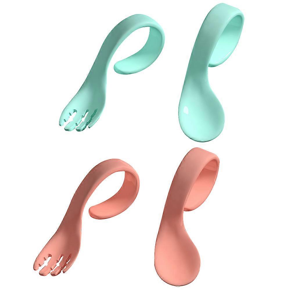 Learning Tableware with 4Pcs Safe Baby Spoon Fork and Anti-Skid Handle