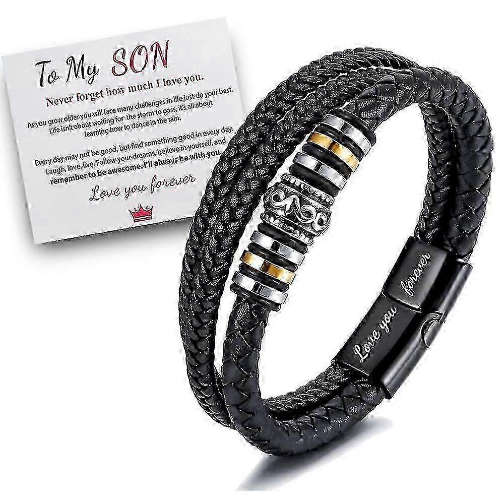 To Grandson Bracelet- "i Will Always Be With You" Braided Stainless Steel Leather Bracelet For Men Boys